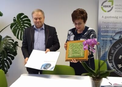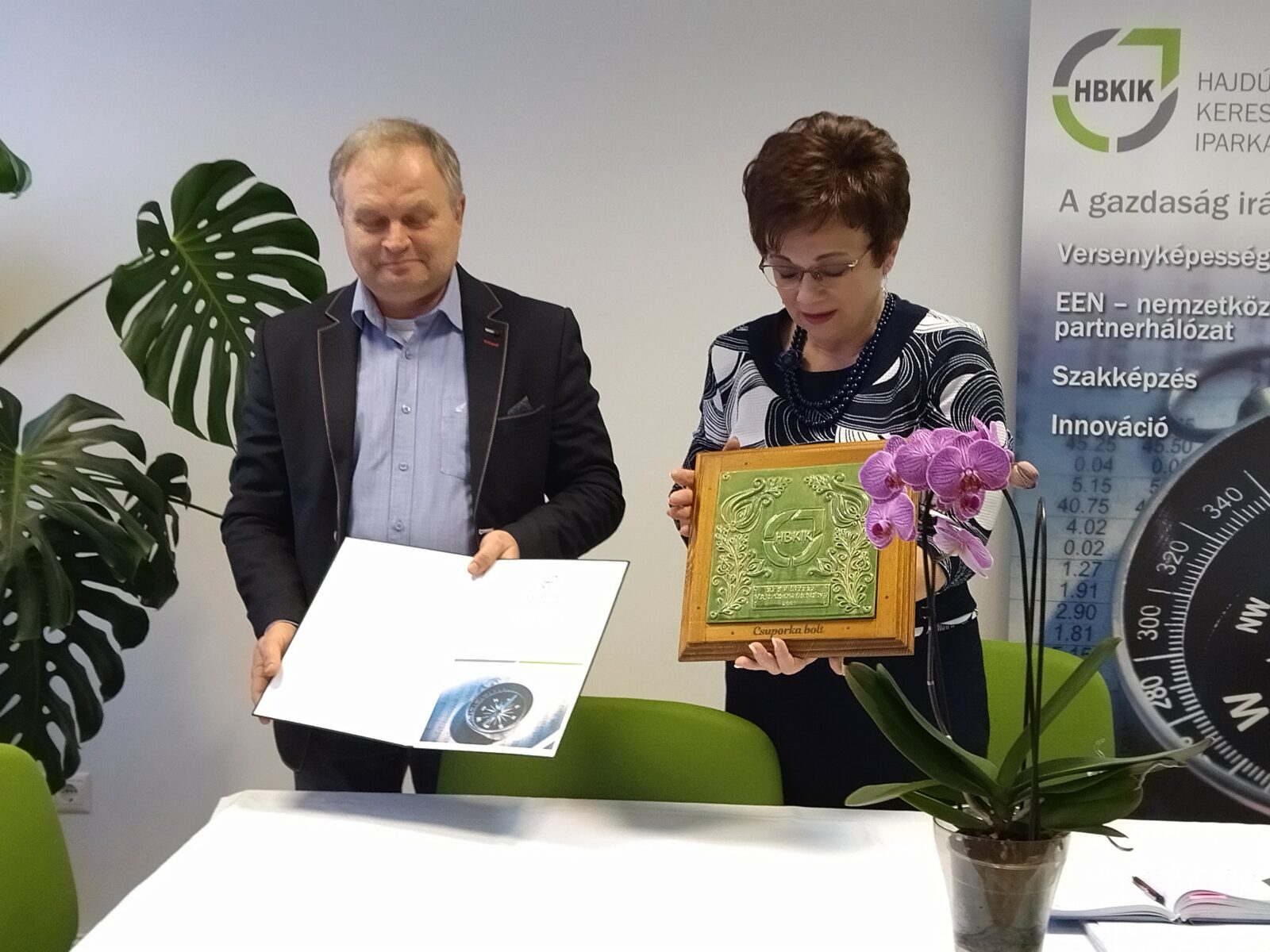 Az év üzlete díjat (melyet a kamara területi szervezete 2019-ben hagyományteremtő szándékkal alapított) Máté Sándor, a HBKIK kereskedelmi alelnöke és Kathiné Juhász Ildikó, a HBKIK vidéki alelnöke, a területi szervezet elnöke adta át a Szekeres-házaspárnak. A házigazda bejelentette, hogy egyeztetést kezdeményeznek a CSOMBÉK Egyesülettel, mely tárgyalások reményeik szerint elvezethetnek egy együttműködési megállapodás aláírásához. Az átadók hangsúlyozták, hogy a díjjal azoknak a helyi vállalkozásoknak a munkáját ismerik el, akik színvonalas szolgáltatásukkal, egyéni fejlődésükkel méltán képviselik szakmájukat, egyszersmind színesítik Hajdúböszörmény város vállalkozói rétegét.