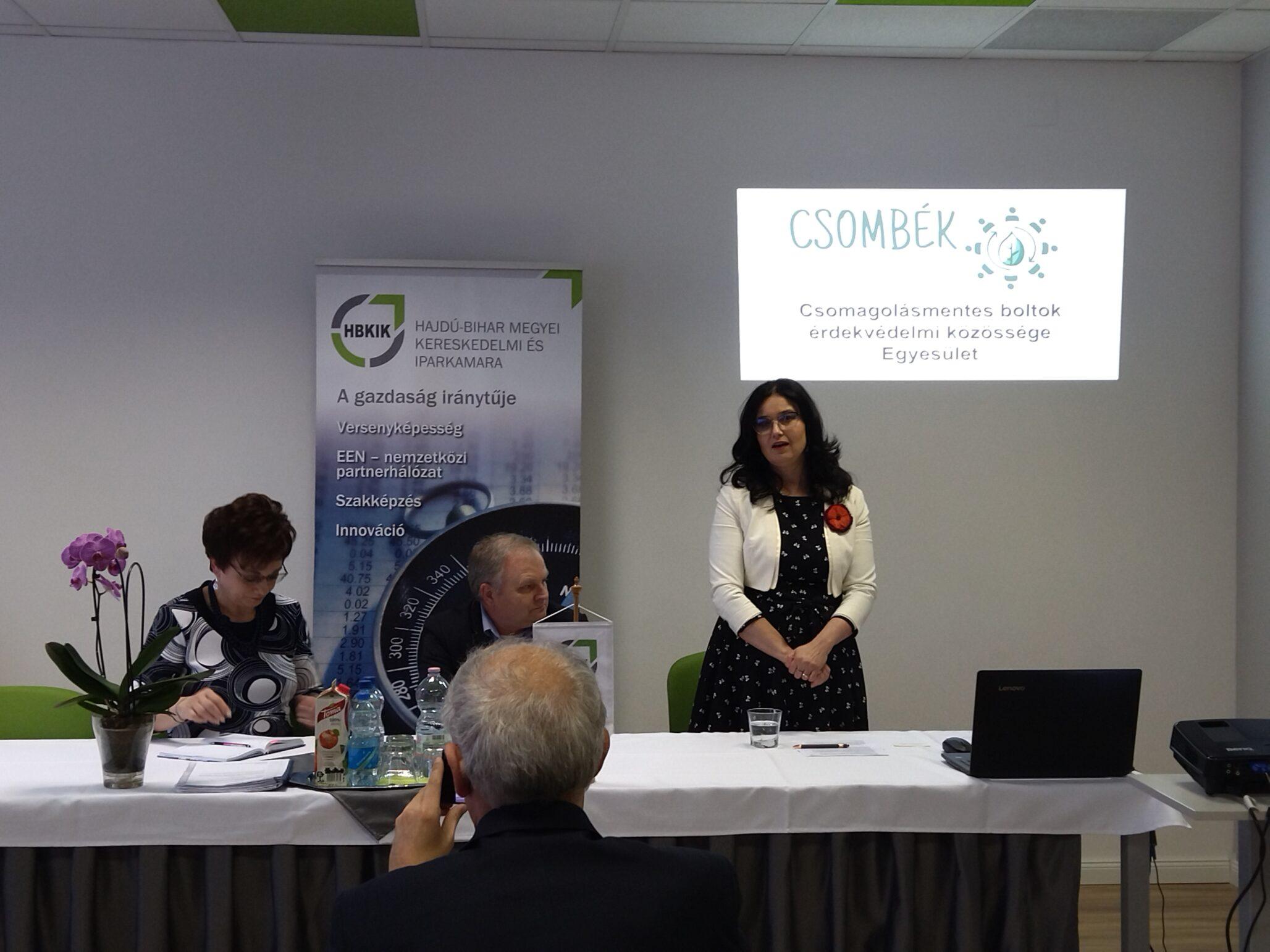 A rendezvényen bemutatkozott a CSOMBÉK Egyesület, mely érdekvédelmi szervezet a Magyarországon működő csomagolásmentes boltokat tömöríti. A boltok a helyi vásárlói igényekhez alkalmazkodnak, saját közösségeket hoznak létre, az egyesület pedig egy óriási családdá tömöríti ezeket a közösségeket. Mravik-Galán Laura egyesületi elnök prezentációjában számokkal is bizonyította azt, hogy egy átlagos csomagolásmentes bolt évente 1,5 tonna hulladéktól mentesíti a természeti környezetet. „Ahány bolt, annyi megvalósítás, annyi gondolat, annyi kínálat és annyi kinézet, de ami közös: a minőség, a családias légkör és a környezetbarát szemléletmód. Támogatják a környékükön élő kisvállalkozásokat, kistermelőket, kézműveseket, családokat” – mondta.