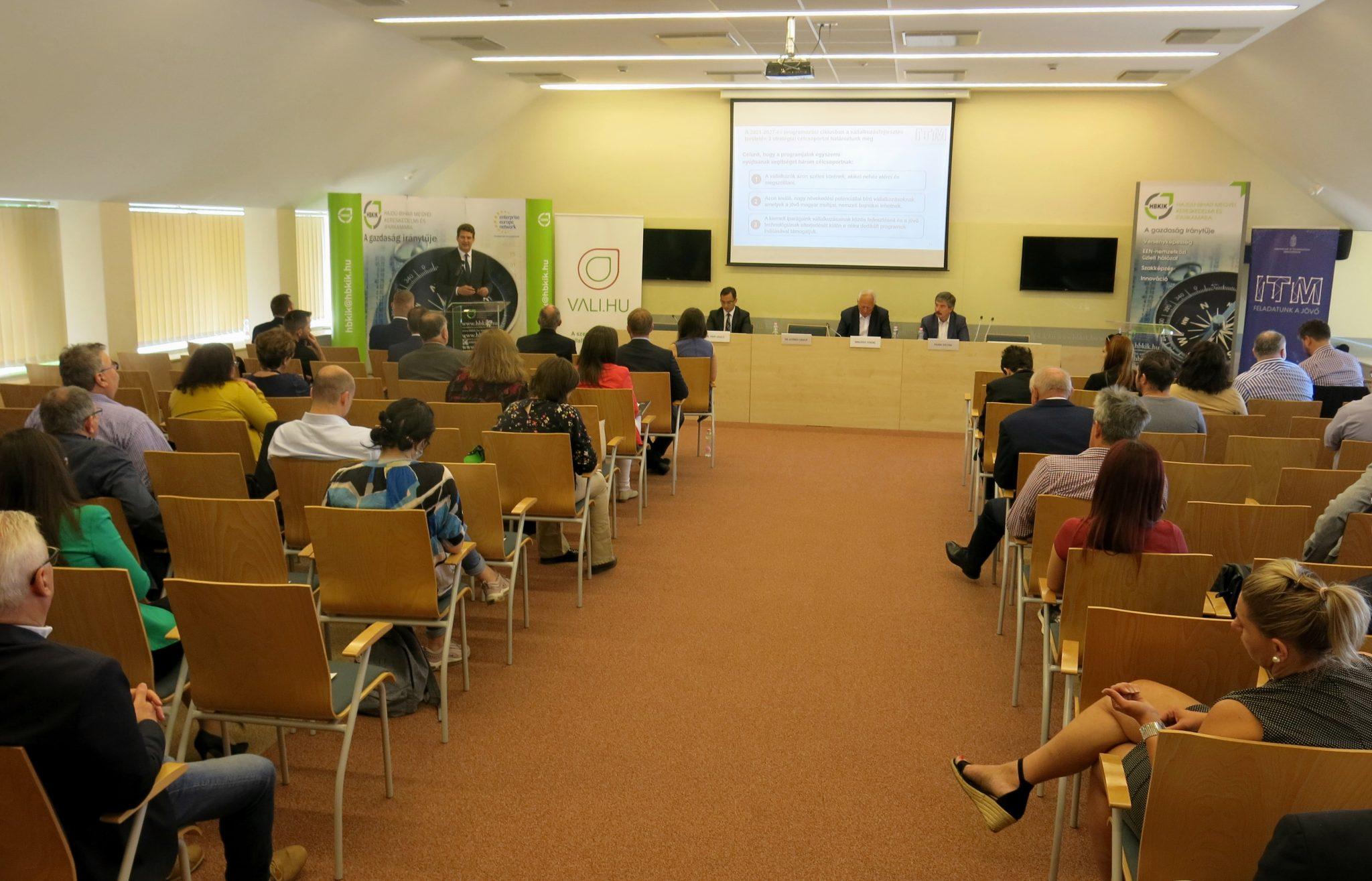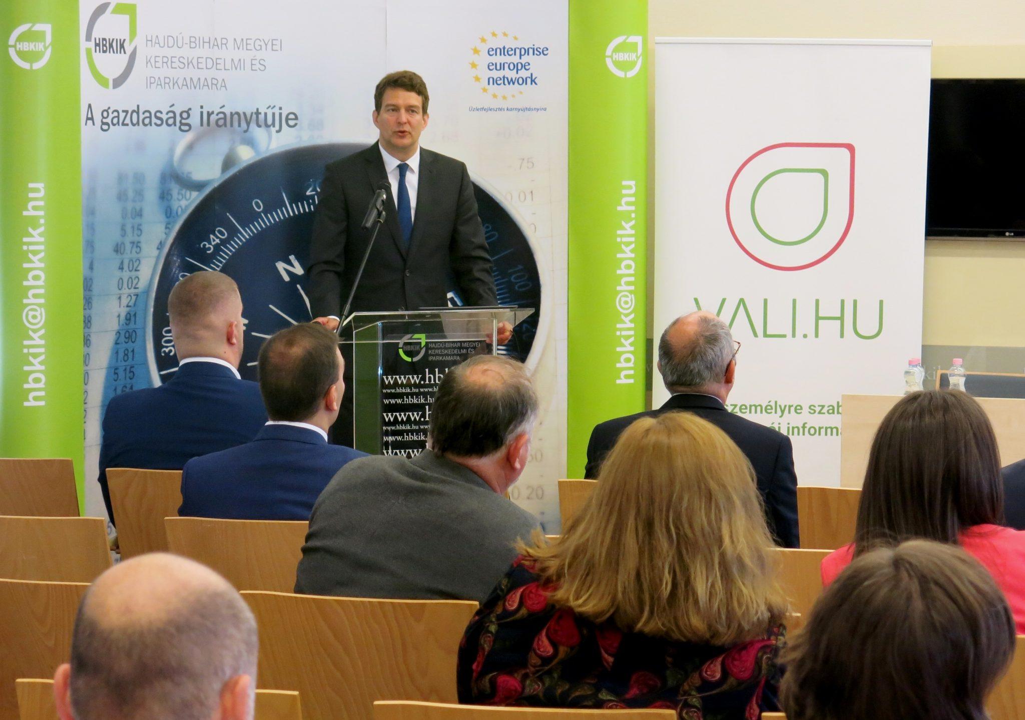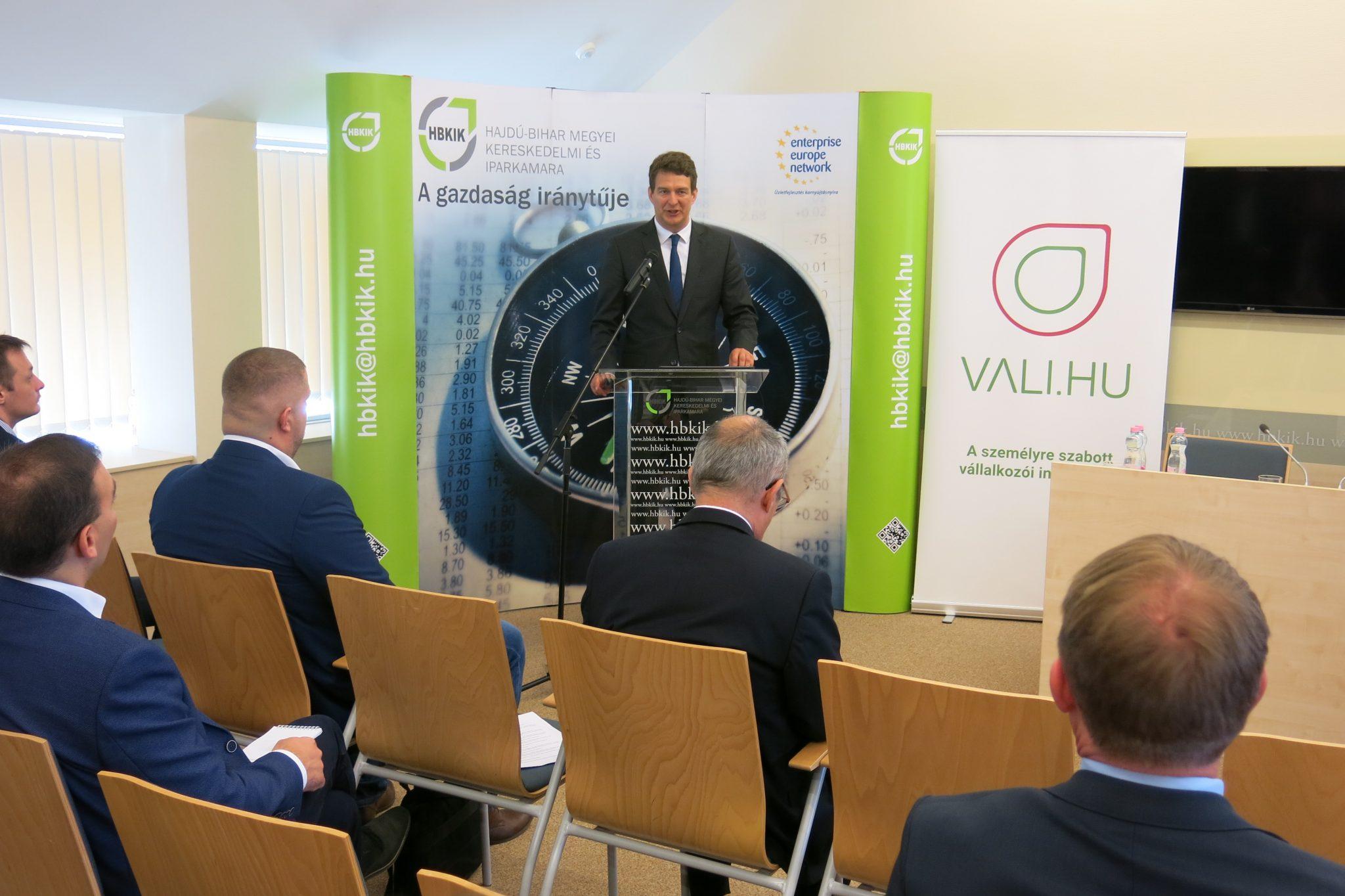 Míg 2020-ban a fő témát a 2021-27-es uniós programozási időszak felhívásainak tervezése, valamint a pandémia okán a Gazdaságvédelmi Akcióterv ismertetése jelentette, addig idén a legfontosabb a vállalkozások tájékoztatása az új EU programozási időszak induló pályázatairól, valamint a megújult Vállalkozói információs portálról (vali.hu) – fogalmazott Dr. György László, az Innovációs és Technológiai Minisztérium (ITM) gazdaságstratégiáért és szabályozásért felelős államtitkára a Hajdú-Bihar Megyei Kereskedelmi és Iparkamara, valamint a szaktárca közös, „Újraindítjuk a gazdaságot” című rendezvényén Debrecenben, a Kamara székházában.