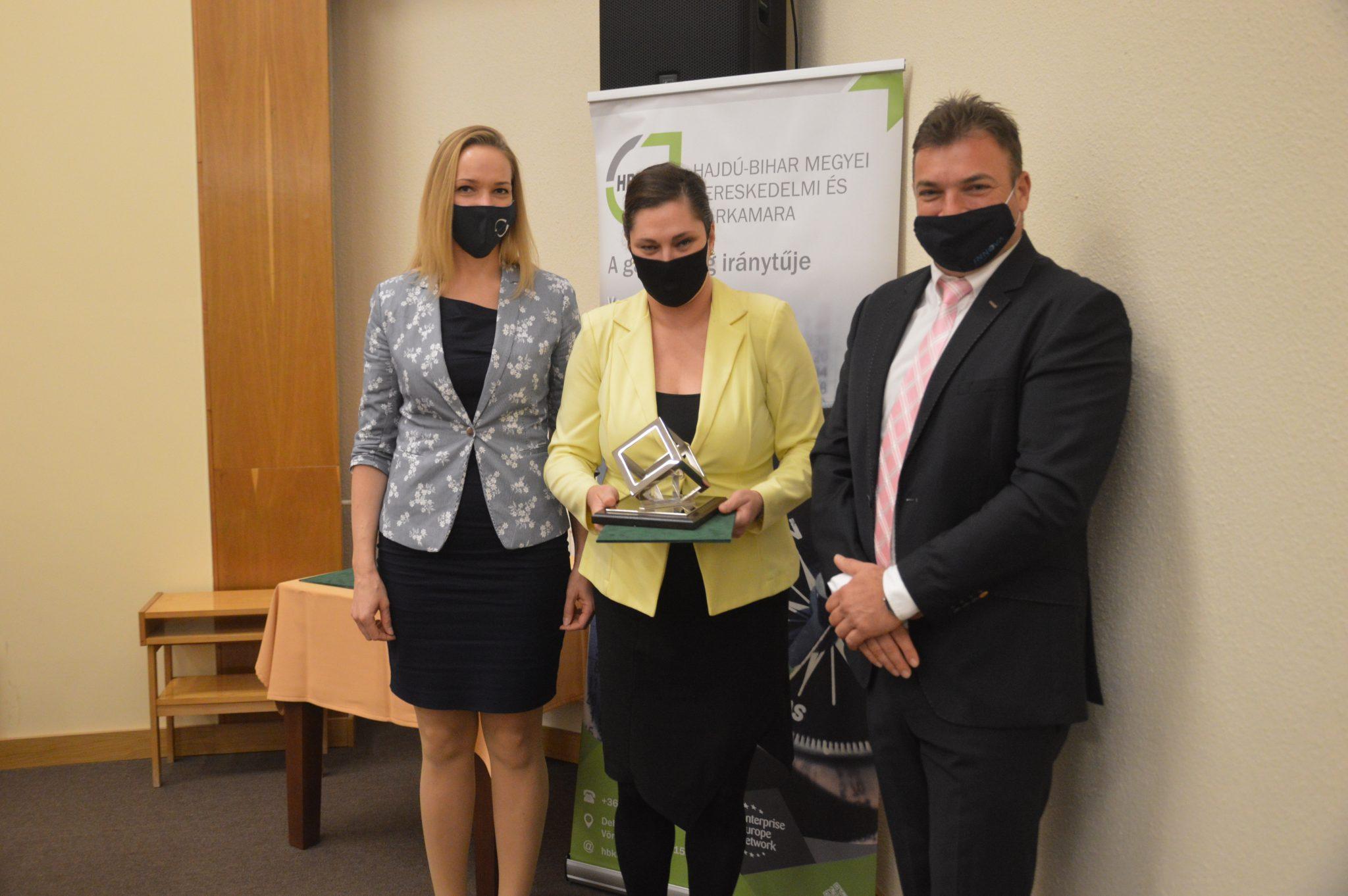 Az Innovációs Díjat Páles Zsolt az MTA DAB elnöke, Rabi Zsuzsa a Jász-Nagykun-Szolnok Megyei Kereskedelmi és Iparkamara gazdaságfejlesztési vezetője és Vámosi Gábor az INNOVA ügyvezetője adta át Dr. Barancsi Ágnesnek, a Túr-Agro Kft. ügyvezetőjének.
