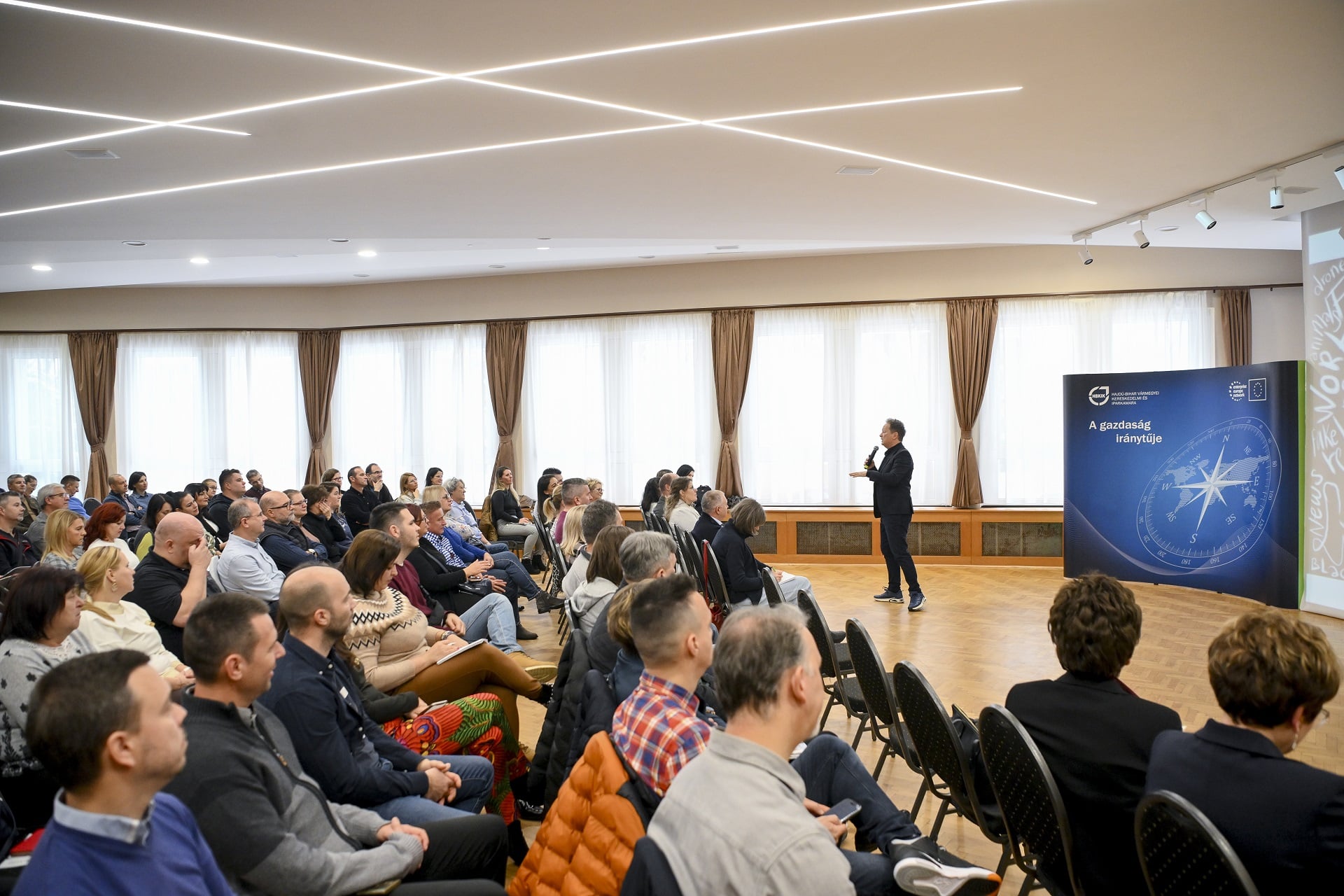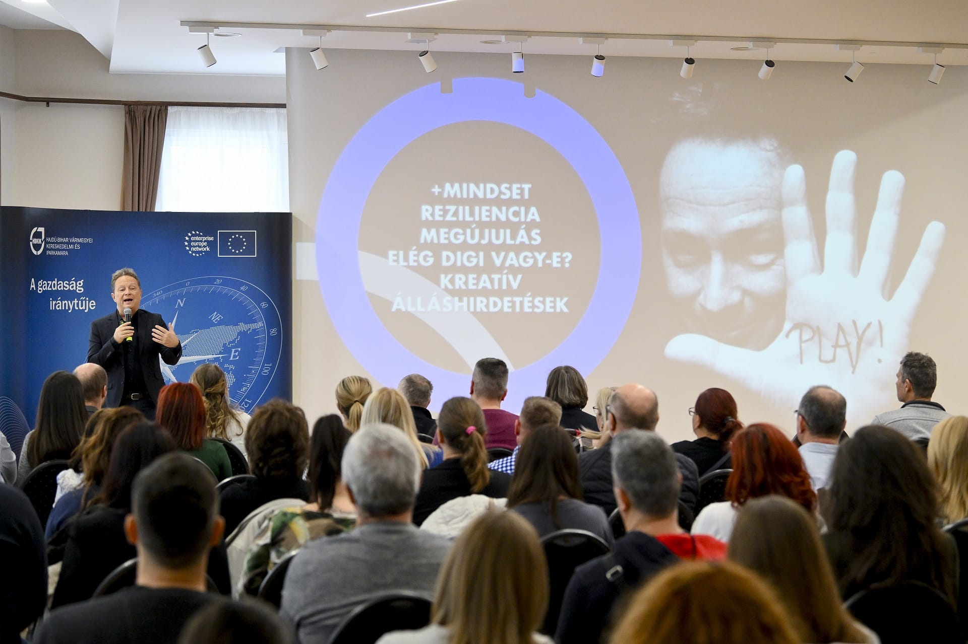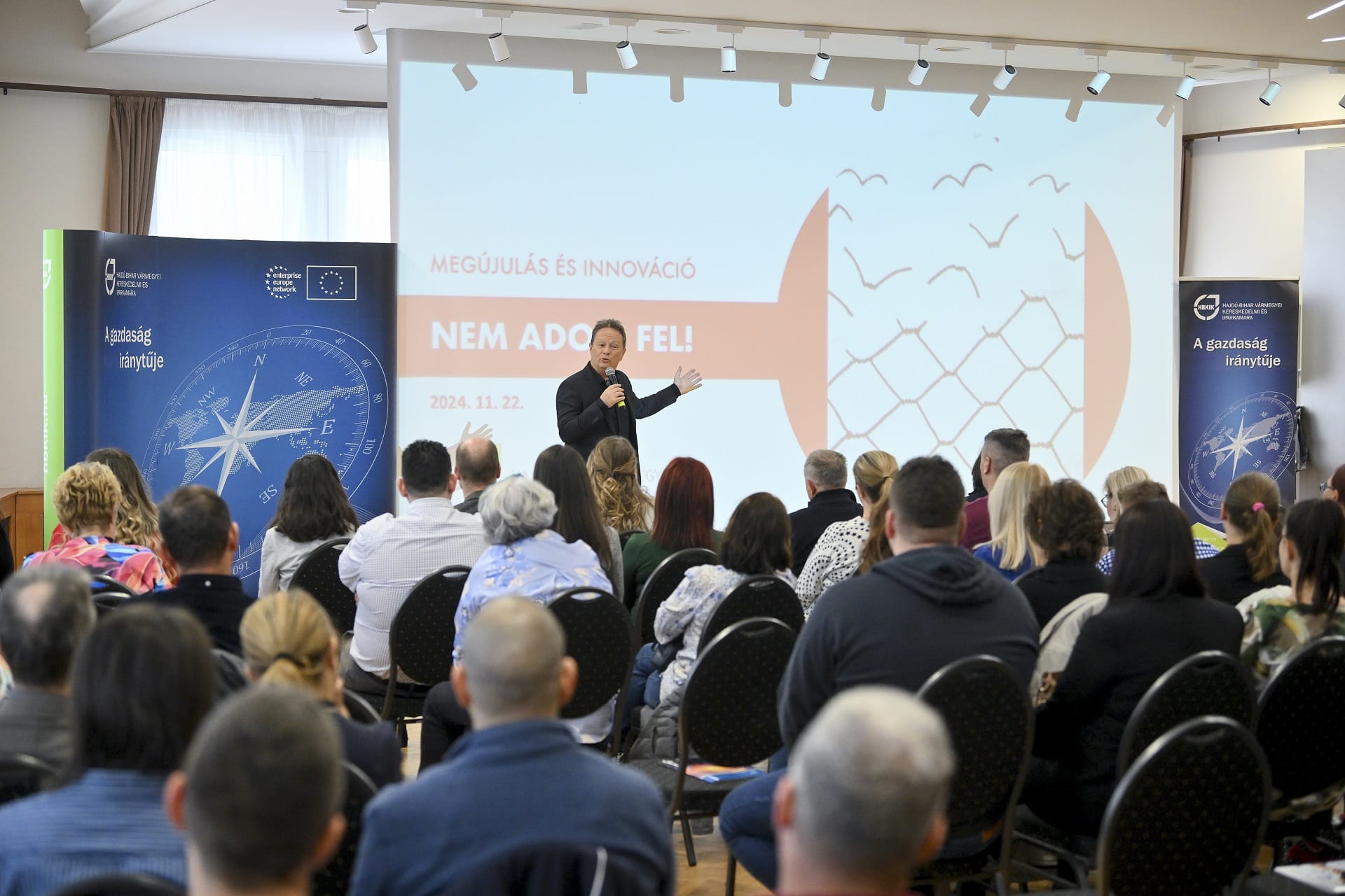Nem adom fel! – Megújulás és innováció címmel tartott előadást Geszti Péter november 22-én, a hajdúböszörményi Sillye Gábor Művelődési Központ színháztermében, a Hajdú-Bihar Vármegyei Kereskedelmi és Iparkamara rendezvényén. Az előadás iránt igen nagy érdeklődés mutatkozott, mintegy 170 vállalkozó regisztrált az ingyenes eseményre.