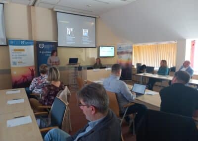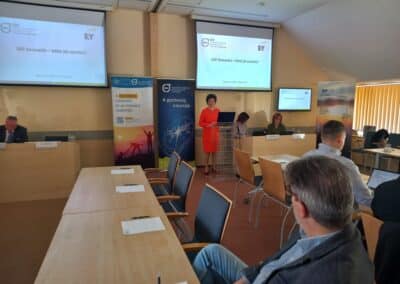 Kőrösi Vanda, a HBKIK nemzetközi ügyek osztályvezetője bemutatta az Enterprise Europe Network projektet, amely további támogatást nyújt a vállalkozásoknak a nemzetközi piacra lépésben.
