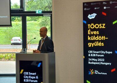 A rendezvényen Mátyus László, a DKV Debreceni Közlekedési Zrt. Innovációs és szolgáltatásfejlesztési igazgatója mutatta be Debrecen smart city koncepcióját és azokat a megoldásokat amik alapján gördülékenyebben lehetne szervezni a város forgalmát, csökkentve az eljutási időket és megelőzve a torlódásokat.