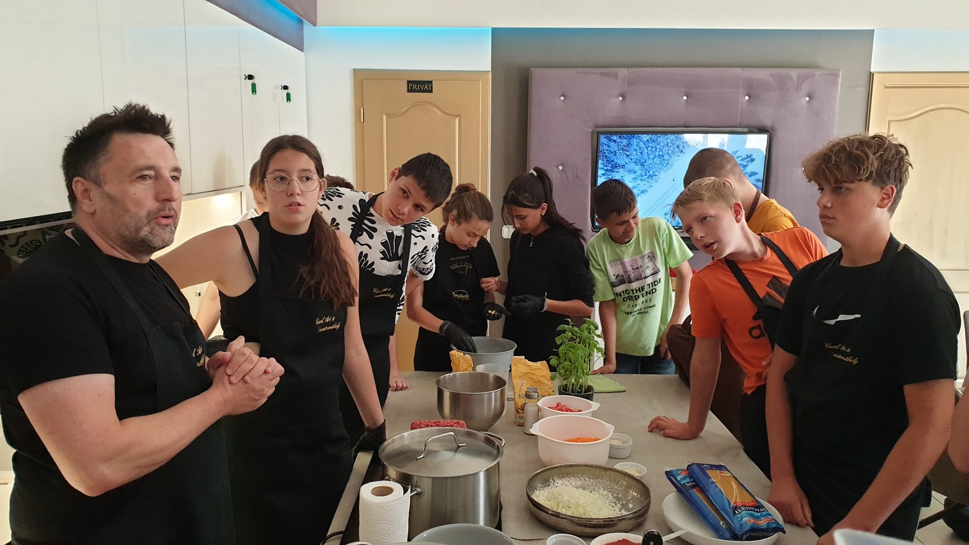 A hét záróeseménye a pénteki élményfőzés volt. A Carol Gasztroműhelyben képzett séf vezetésével a gyerekek maguk készíthették el háromfogásos menüsorukat, közben rengeteg hasznos információval és szórakoztató élményekkel gazdagodhattak.