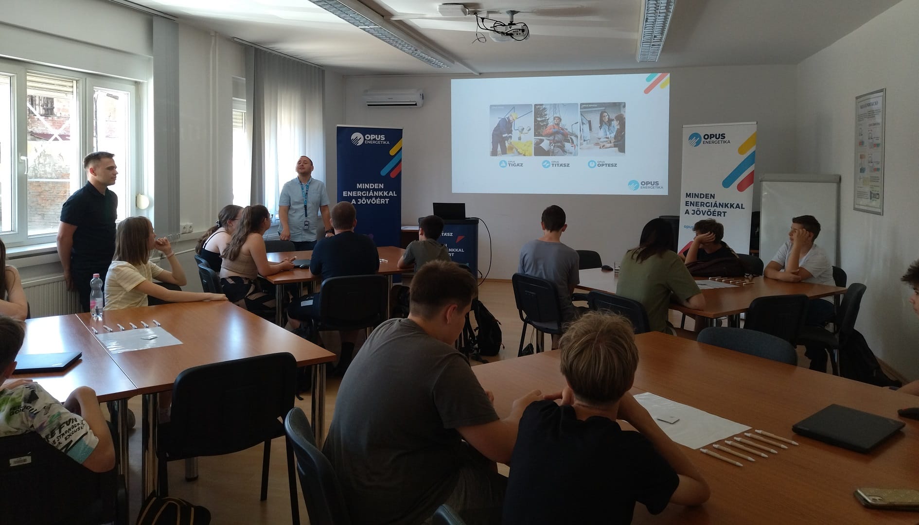A tábori hét elején a pszichológus által vezetett tréningen a fiatalok körében már ismert és népszerű játékok ötvöződtek a pályaismereti és a gyermekek jövőképére vonatkozó szempontokkal. A Schaeffler Debrecen Kft.-nél a gyárbejárást követően a többek között megmunkálógépek kezelését sajátíthatták el egy játékos feladat keretében a diákok. Az OPUS TITÁSZ Zrt. kollégái interaktív kvízjátékkal mozgatták meg a gyerekeket, majd a tanműhelyben bemutatták a villamosenergia útját a Naptól egészen a felhasználásig. A Debreceni Nemzetközi Repülőtér keddi látogatása során a repülőgépek kiszolgálóegységeinek kulisszatitkaiba avattak be bennünket, a tűzoltóegységektől a hangárokon át a kifutópályán is jártunk, és testközelből nézhettük a gépek fel- és leszállását.