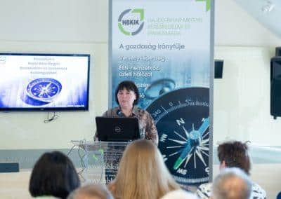 Dr. Skultéti Éva, a HBKIK főtitkára részletesen beszámolt a Kamara tavaly elvégzett munkájáról, és szavaiból (meg persze a számokból) egy felelős és eredményes gazdasági év képe rajzolódott ki. Mint mondta, a bevételi tervet túlteljesítették, a kiadásokat mederben tartották, a rendelkezésükre álló vagyont pedig igyekeztek a jó gazda gondosságával óvni és gyarapítani. A területi irodák munkája kapcsán elhangzott, hogy, bár eltérő körülmények között működnek, mind nagyobb ügyfélforgalmat bonyolítanak, amihez a Kamara igyekszik egyre korszerűbb feltételeket biztosítani. Elhangzott az is, hogy ugyan az önkéntes kamarai tagok száma némileg csökkent az elmúlt évben – elsősorban a vállalkozások megszűnésének, elköltözésének következtében –, a regisztrált vállalkozások száma nőtt. A főtitkár elismerően szólt arról, hogy egyre javul a vállalkozók pénzügyi tudatossága abban a tekintetben is, hogy mind kevesebben mulasztják el fizetési kötelezettségeik teljesítését.