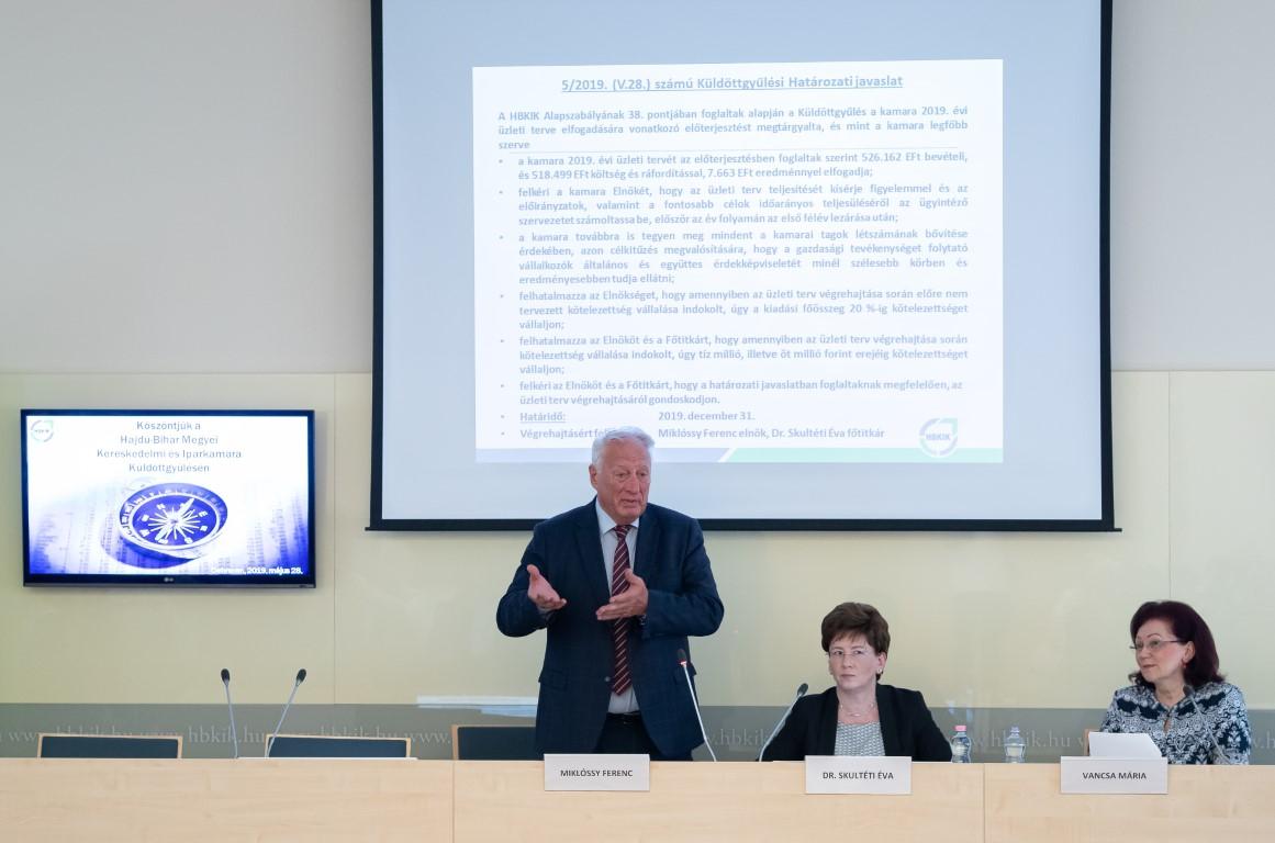 A küldöttgyűlés a Kamara 2019. évi üzleti terve elfogadására vonatkozó előterjesztést is megtárgyalta és elfogadta.