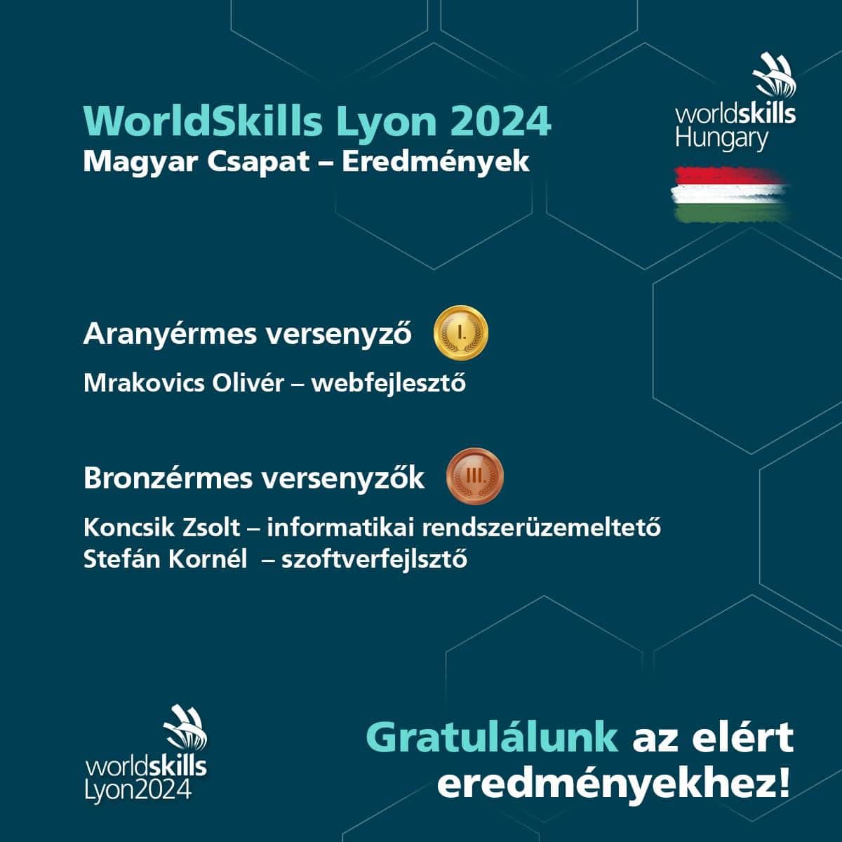 Kiemelkedő teljesítményének köszönhetően bronzérmet szerzett továbbá Koncsik Zsolt, informatikai rendszerüzemeltető és Stefán Kornél, szoftverfejlesztő versenyszámokban.