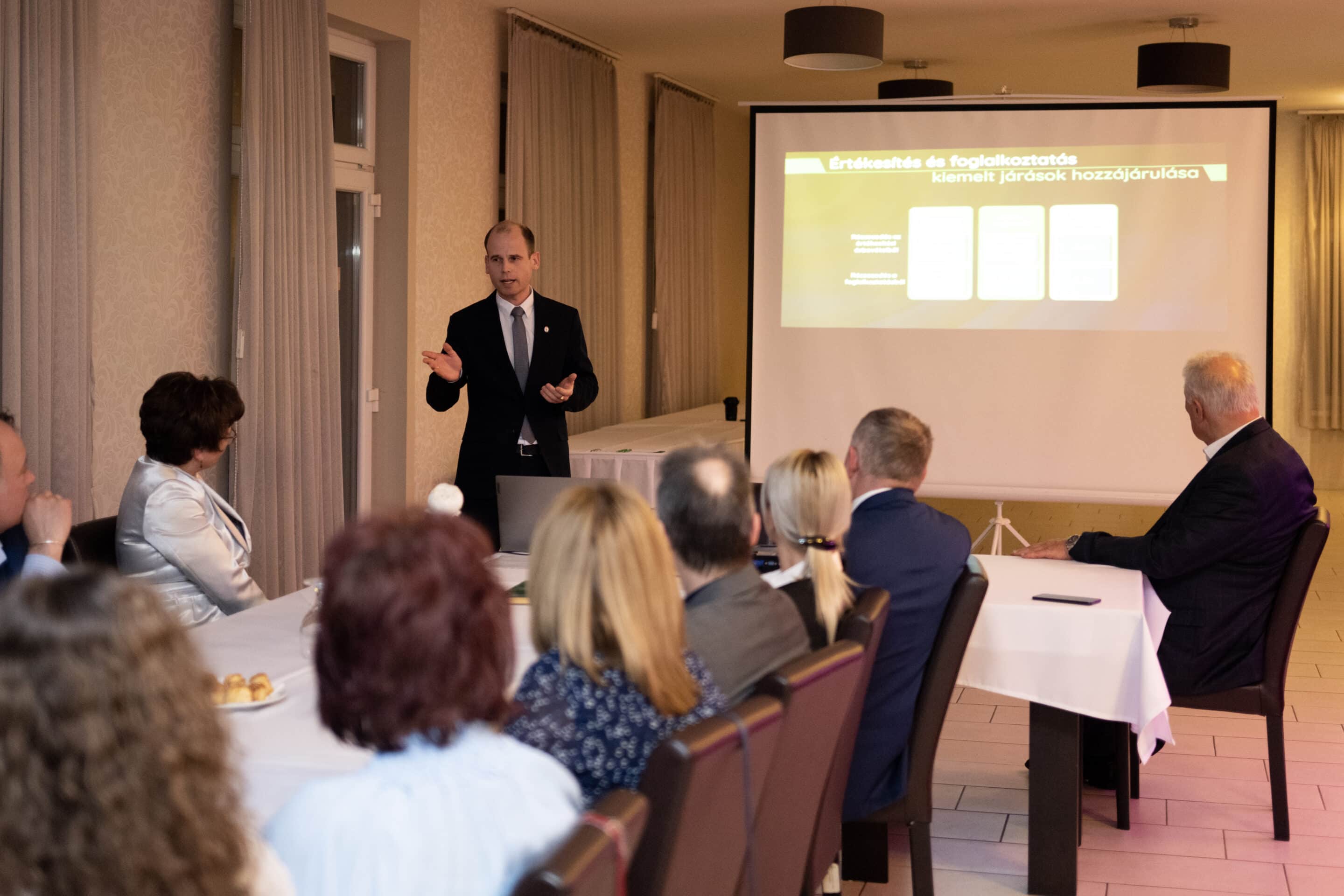 Miklóssy Ferenc, a HBKIK elnöke ezúttal is világossá tette, hogy a pénzt nem az állam adja, a pénzt a vállalkozók adják, az állam legfeljebb visszaosztja azt, amit tőlünk közteherként beszedett. „Az új területfejlesztési stratégia vállalkozásokat érintő része döntően a kamarákra épül, ami hatalmas felelősség, de hatalmas lehetőség is az érdekeink érvényesítésére. A prioritás a magyar gazdaság versenyképességének a javítása, mindent ennek kell alárendelni – jelentette ki.