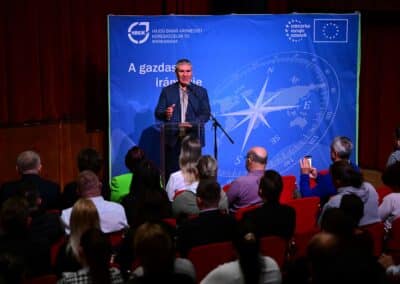 A Hajdú-Bihar Vármegyei Kereskedelmi és Iparkamara Püspökladányi Területi Szervezete, a vállalkozók és vállalkozások részére a térség gazdaság fejlesztésének, összefogásának elősegítése jegyében 2025. október 16-án előadást szervezett Nádudvaron, az Ady Endre Művelődési Központ és Városi Könyvtár színháztermében, ahol Dr. Kemény Dénes egykori válogatott vízilabdázó, edző, állatorvos arról tartott előadást, hogy a vállalkozások vezetői miként tanulhatnak az olimpiai sikerekből.