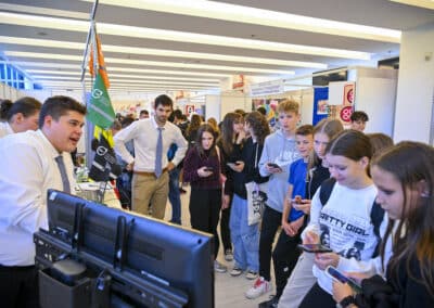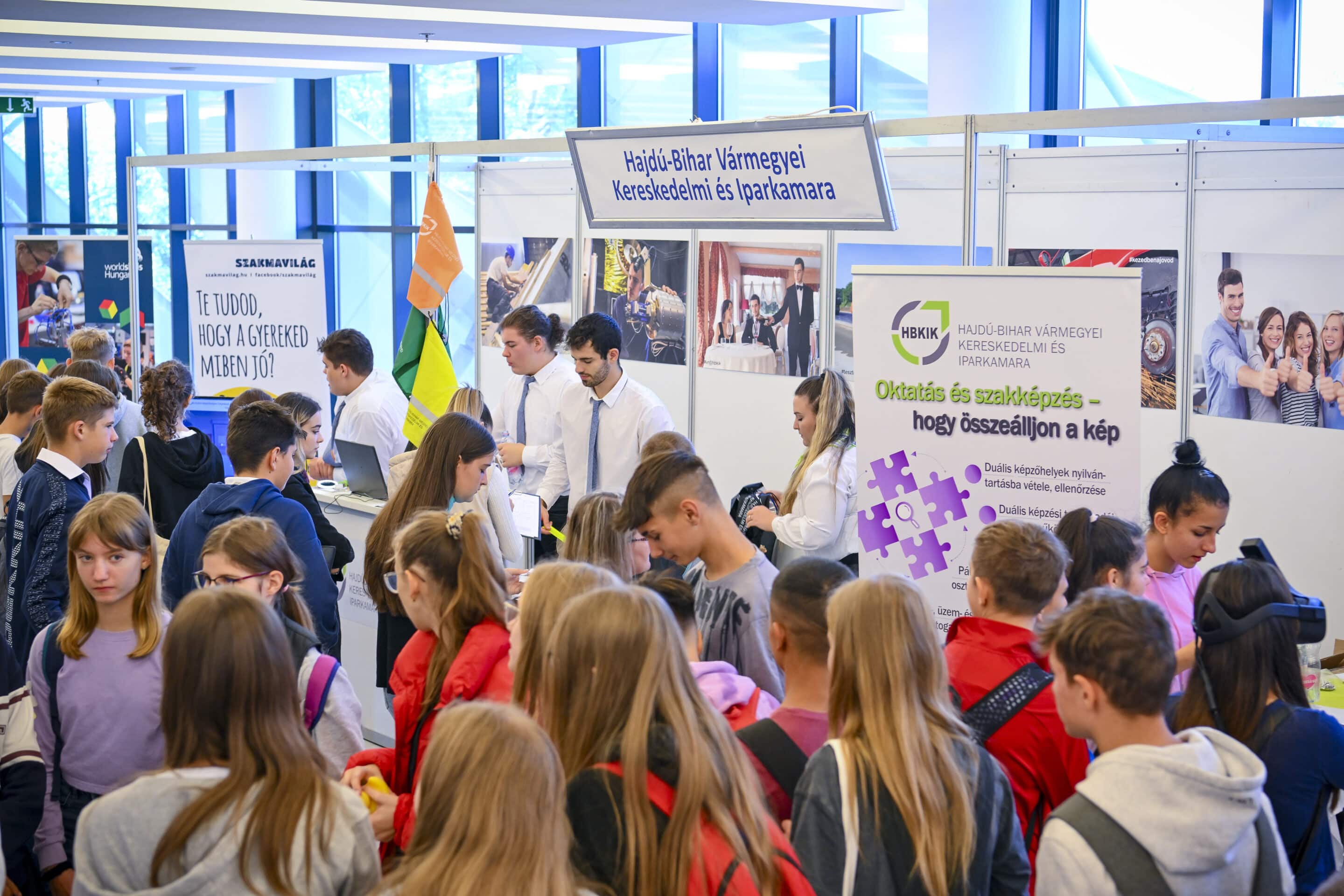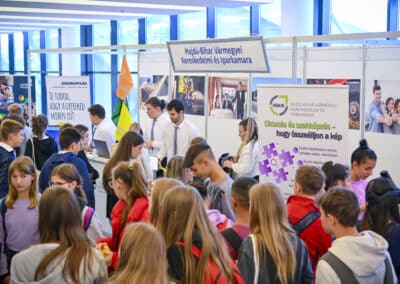 Azok, akik ellátogattak a stadion VIP részlegébe, lehetőségük nyílt találkozni a Hajdú-Bihar Vármegyei Kereskedelmi és Iparkamara standjával is. Interaktív programokban idén sem volt hiány, hiszen puzzle kockán túl a Kahoot-kvízjátékban a versenyzők játékos formában ismerhették meg a szakmatanulás rejtelmeit, előnyeit. A Kamara standjának további színes elemeként a résztvevők a festő-fényező szimulátort próbálhatták ki. Továbbá kollégáink pályaorientációs témában és a duális képzéssel, szakmatanulással kapcsolatos kérdéskörökben adtak tanácsot nem csak a gyerekeket, de az osztályfőnököknek, szülőknek is.