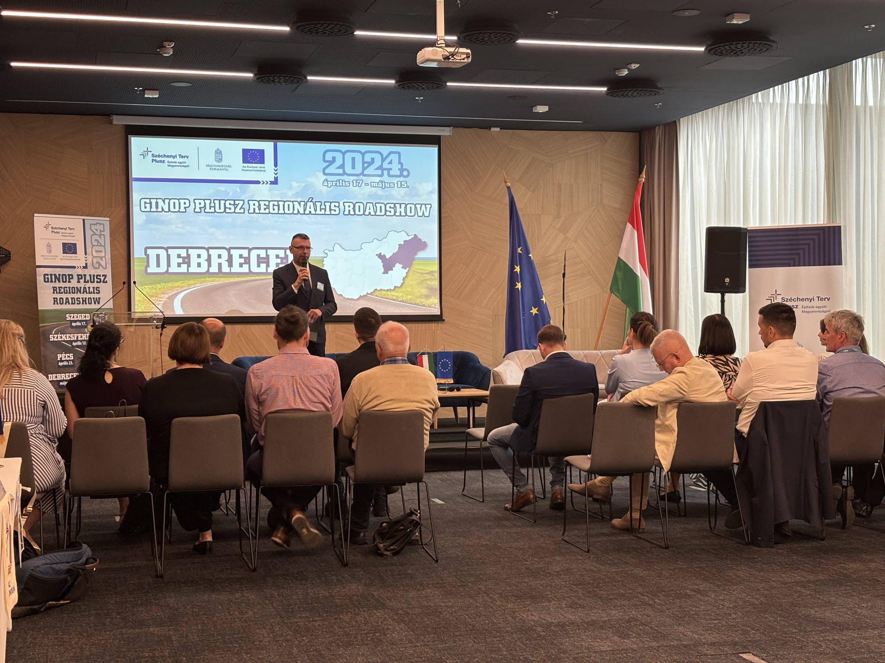 A Közigazgatási és Területfejlesztési Minisztérium Gazdaságfejlesztési Programok Végrehajtásáért Felelős Helyettes Államtitkárság, mint GINOP Plusz Irányító Hatóság regionális vállalkozásfejlesztési információs napot szervezett 2024. május 07-én a debreceni Mercure Hotelben.