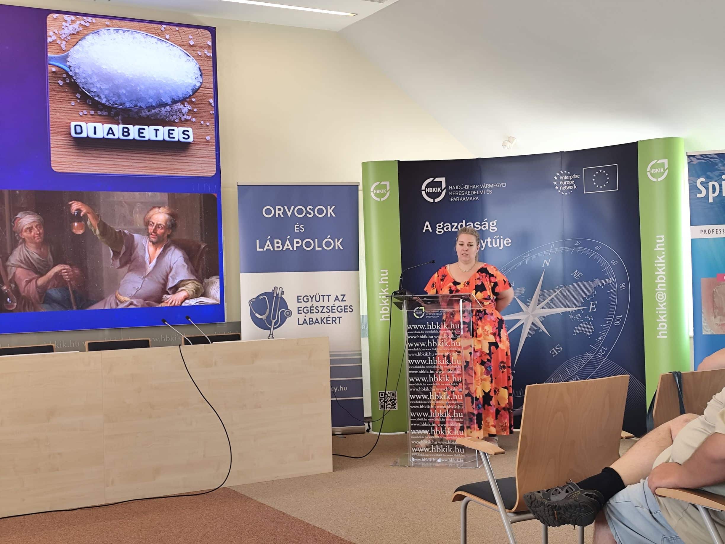 A kéz- és lábápolók szakorvosokkal történő szoros együttműködése vármegyénkben egyedülálló és kiemelkedő! Ezúttal neurofiziológiai szakorvos, belgyógyász, diabetológus, endokrinológus és kézsebész osztotta meg tudását. A kézen és lábon megjelenő elváltozások lehetnek komolyabb egészségügyi problémának a tünetei, következményei, ugyanakkor ezek az elváltozások maguk is egészségügyi kockázatot jelenthetnek. A pontos diagnózis és a helyes kezelési, ápolási mód a diabétesszel élők körében különösen fontos.