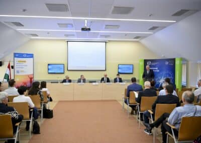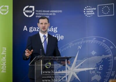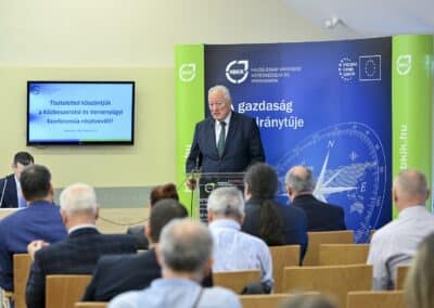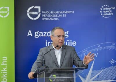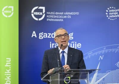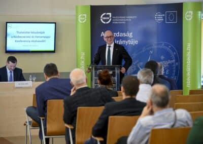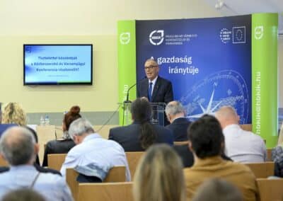 Miklóssy Ferenc, a házigazda HBKIK elnöke köszöntőjében úgy fogalmazott, fontos, hogy a közpénzek útja átlátható legyen, közben pedig hatékonyságra kell ösztönözni a cégeket. – Nem ritka már az olyan közbeszerzés, amelyen 10-15 pályázó is indul; ez ösztönöz itt mindenkit arra, hogy minél hatékonyabb, költségtakarékos megoldásokkal versenyezzen a közpénzért. A jövőben talán még inkább így lesz – fogalmazott Miklóssy Ferenc, hozzátéve, hogy a versenyhivatal szerepe az elmúlt években rendkívüli módon megnőtt. A konferencia megnyitóján Rácz Róbert vármegyei főispán azt hangsúlyozta, hogy a közbeszerzési eljárások esetében amellett, hogy javítani kell a közmorálon – ebben a tekintetben máris van előrelépés – lényeges szempont, hogy a magyar tulajdonú cégek tudjanak erősödni. A Gazdasági Versenyhivatal tevékenysége kapcsán pedig fontos törekvés, hogy még hatékonyabban védje meg a fogyasztókat az úgynevezett „gigacégek” túlhatalmával szemben.