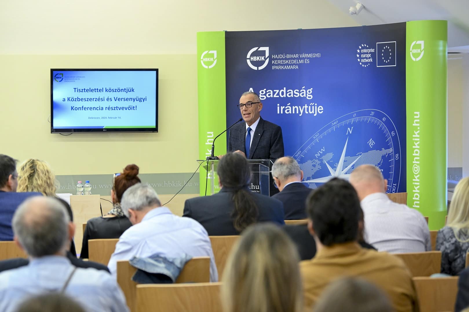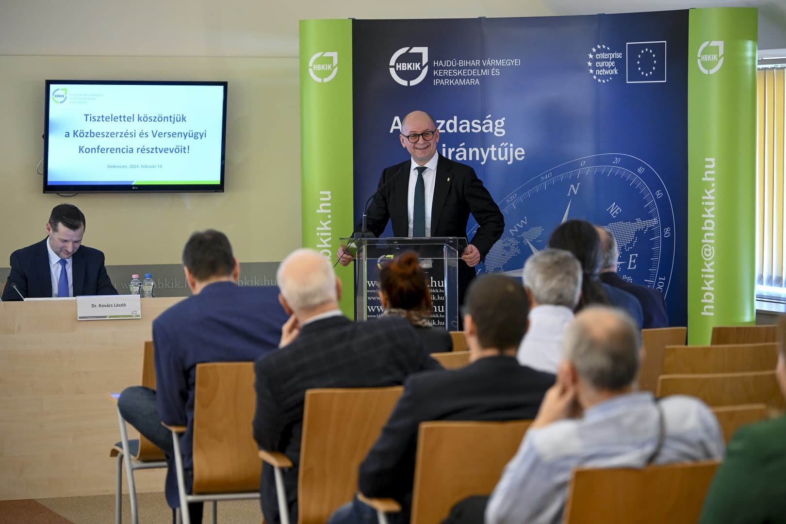 A vállalkozók első kézből értesüljenek a közbeszerzési törvény változásairól, a közbeszerzési verseny fokozásának lehetséges módozatairól és úgy általában a verseny tisztaságáért tett intézkedésekről. Miért érdemes együttműködni a Gazdasági Versenyhivatallal? – idén ezeket a témákat tűzte zászlajára az a Közbeszerzési és Versenyügyi Konferencia, melyet immár 14. alkalommal szervezett meg Debrecenben a Hajdú-Bihar Vármegyei Kereskedelmi és Iparkamara a Közbeszerzési Hatósággal és a Gazdasági Versenyhivatallal partnerségben 2024. február 14-én.
