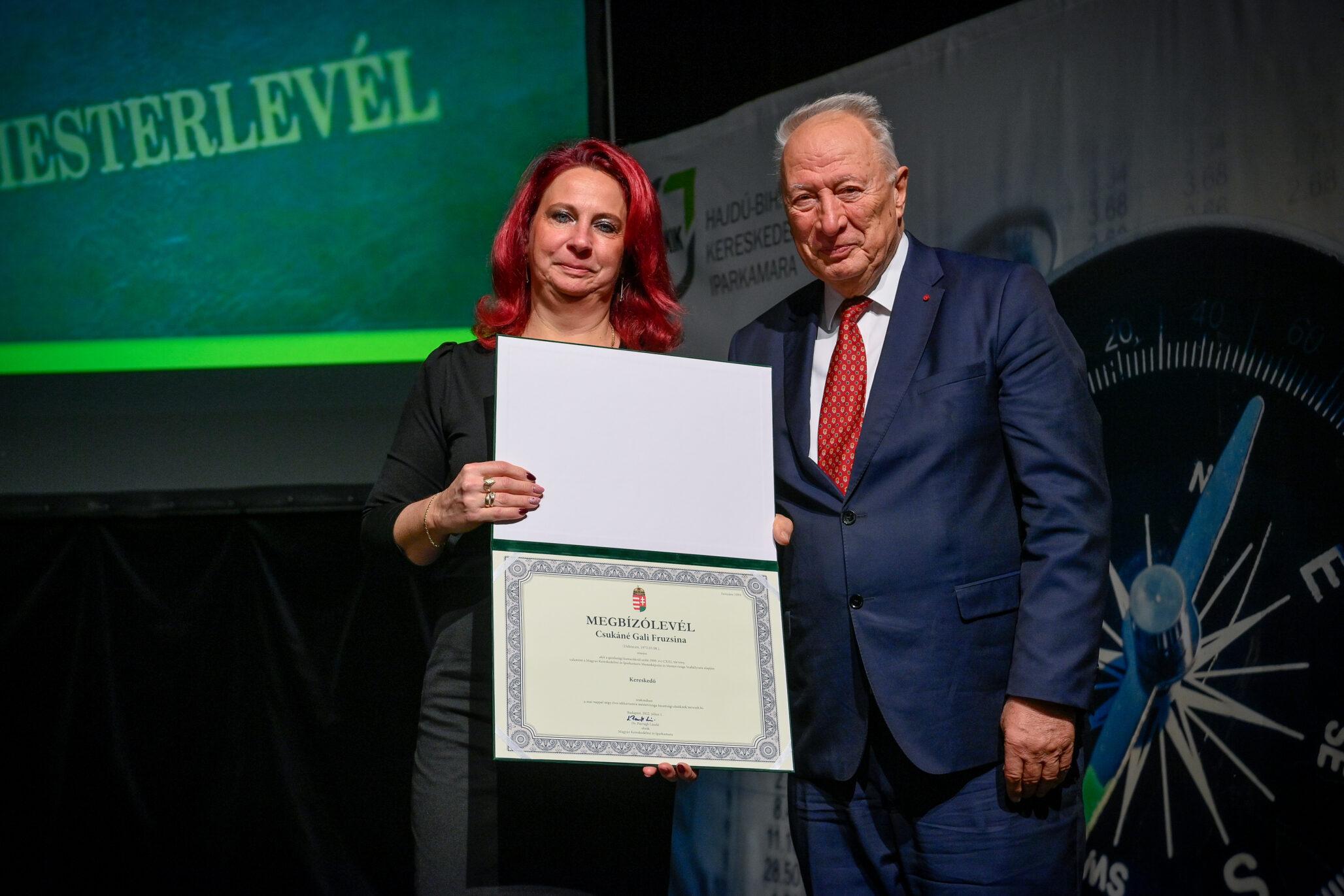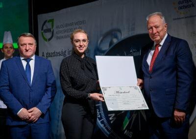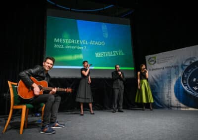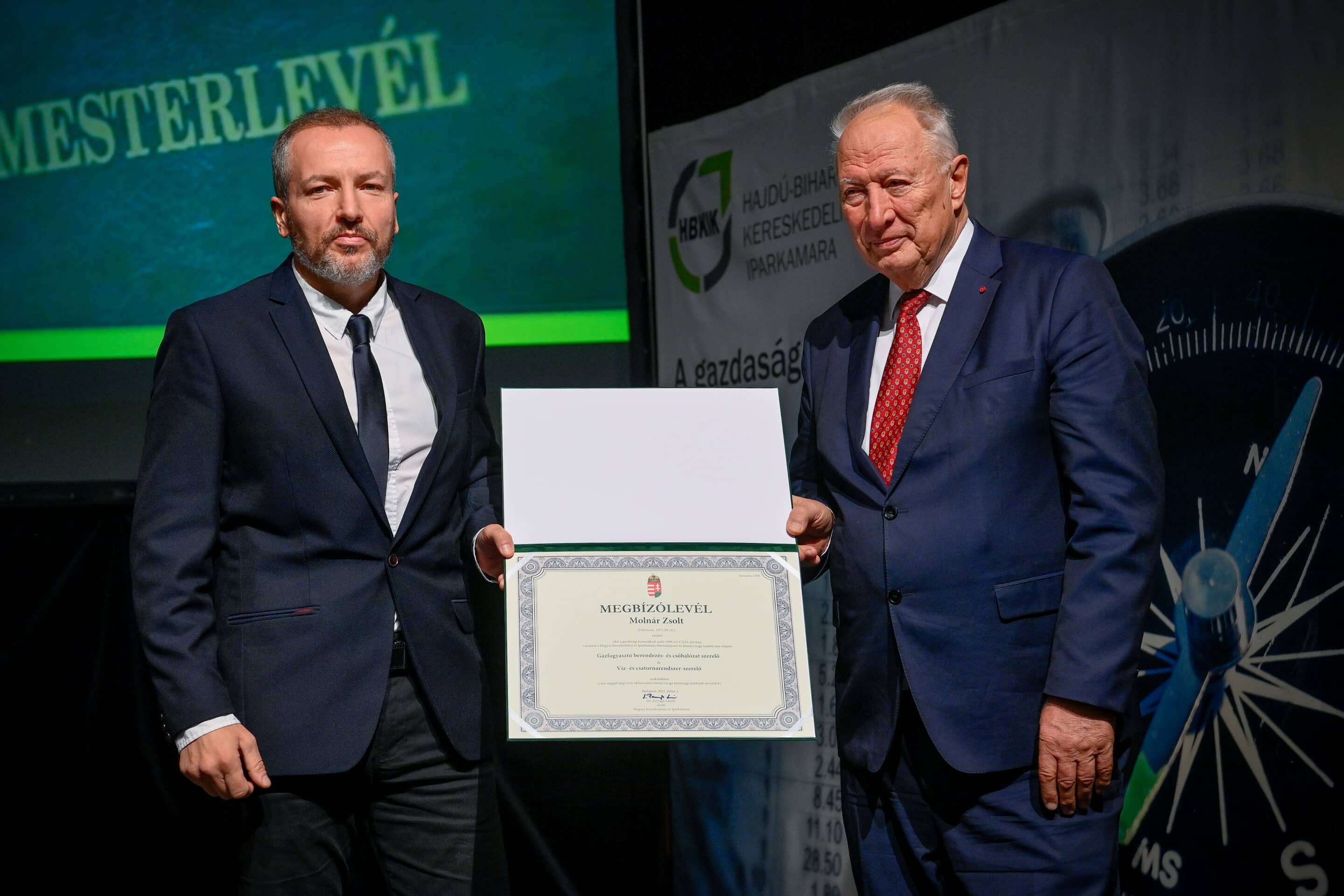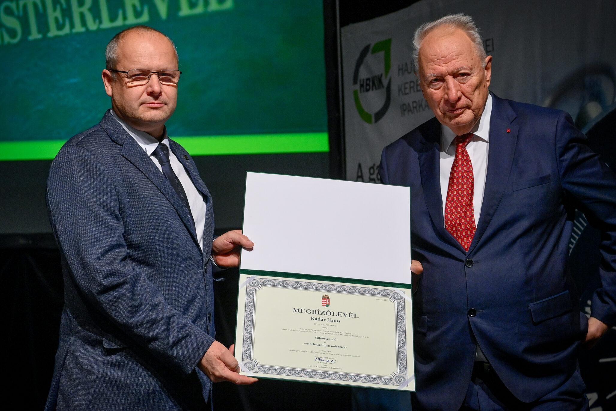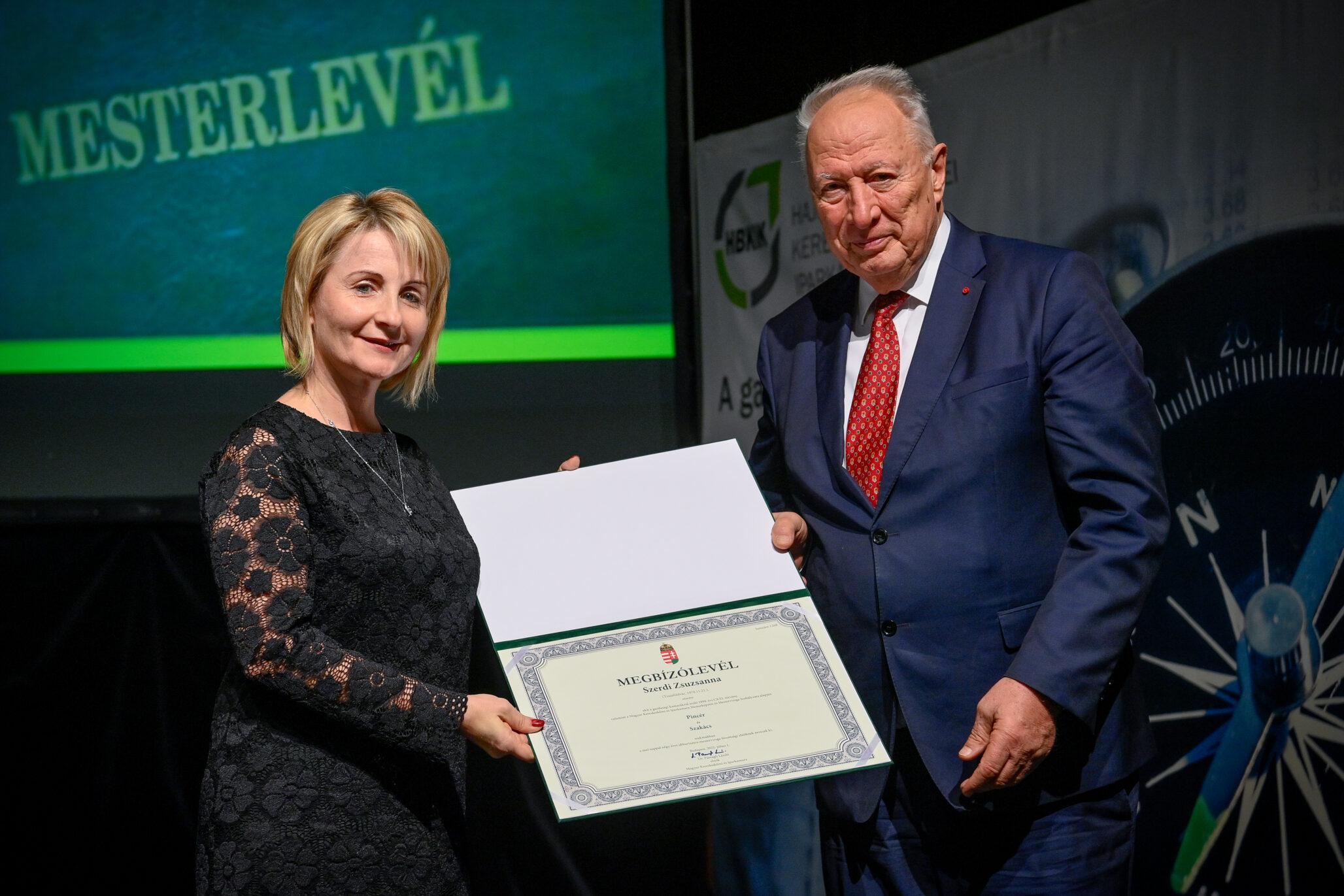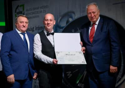 „Egy jó mester a világon is igazít” – Kiss Anna prózájának az utolsó mondata elevenedett meg a Hajdú-Bihar Megyei Kereskedelmi és Iparkamara (HBKIK) mesterlevél–átadó ünnepségén 2022. december 7-én, a debreceni Kölcsey Központ báltermében. Kamaránk idén kozmetikus, pincér és szakács szakmákban szervezett mestervizsgát. Az ünnepi esemény különlegessége, hogy ezúttal aranykoszorús mesterlevél és mesterelnöki kinevezések átadására is sor került.
