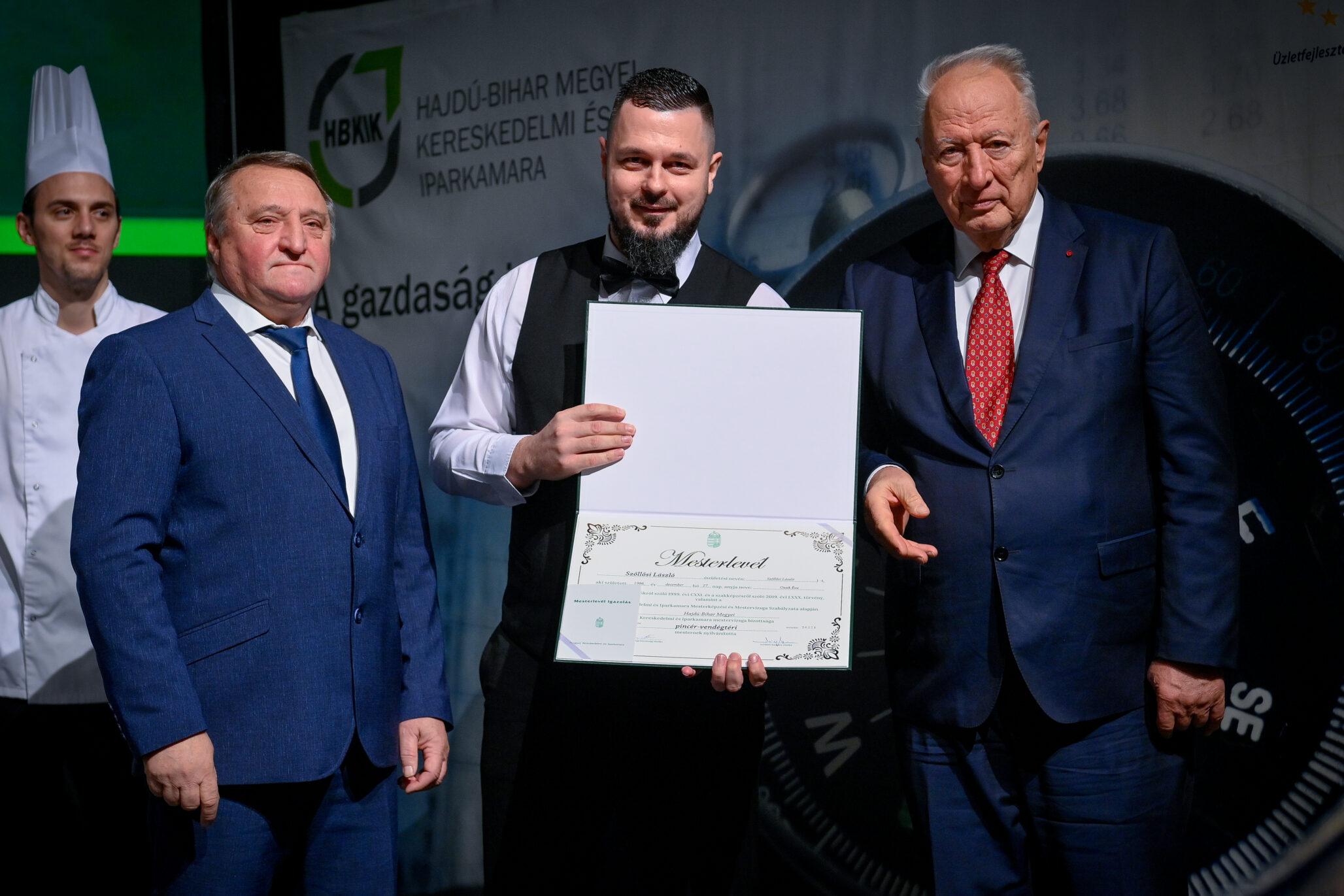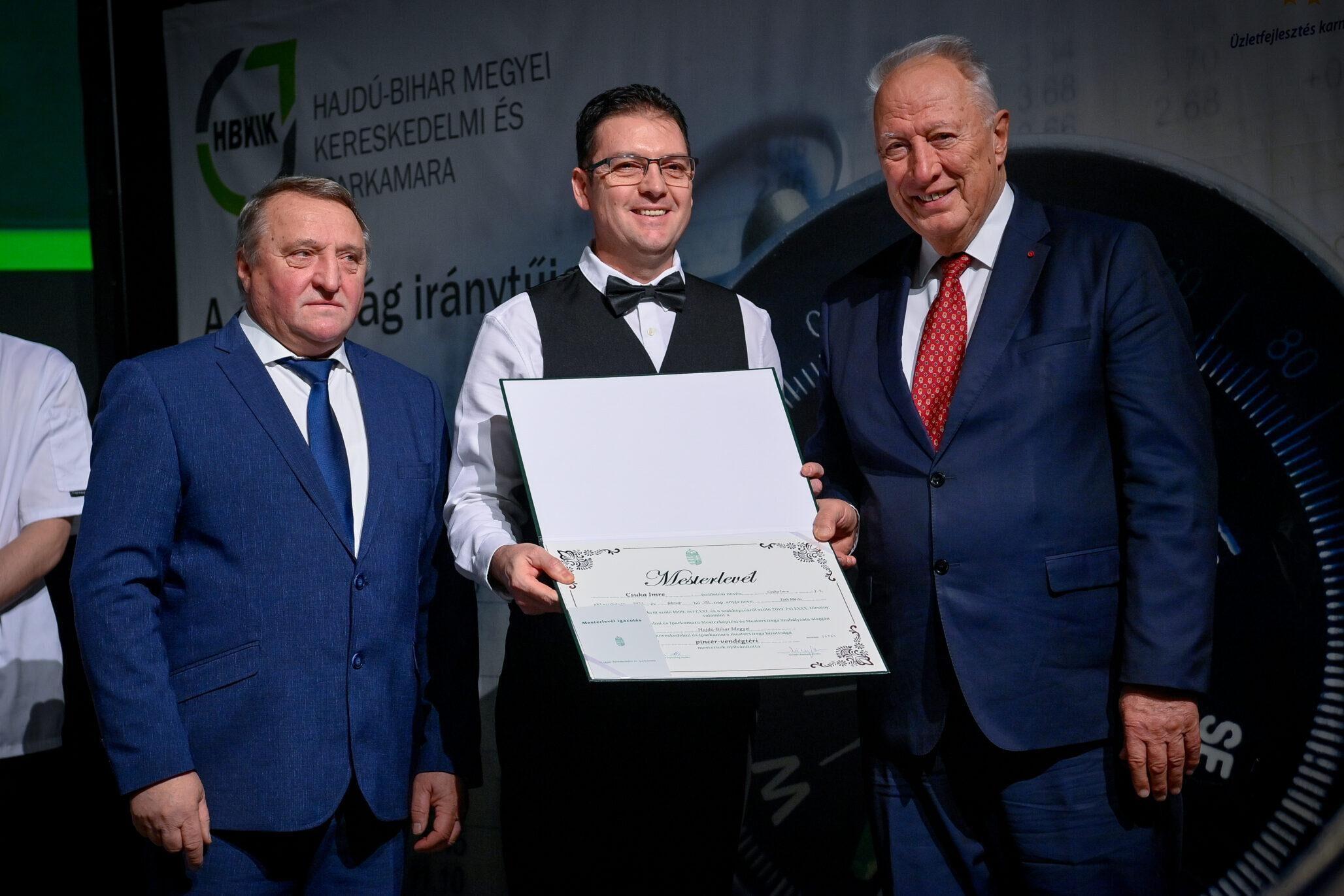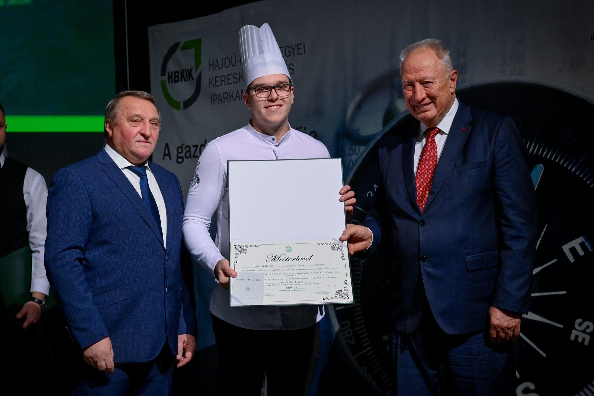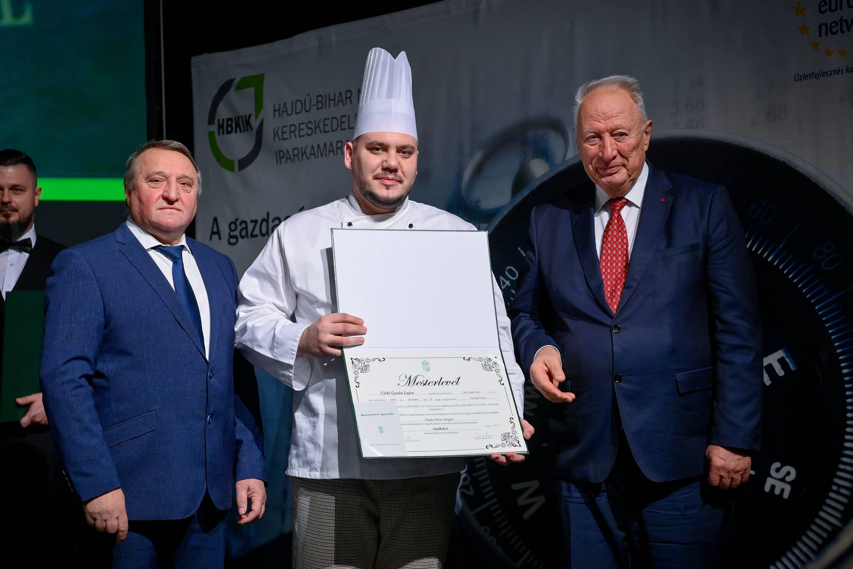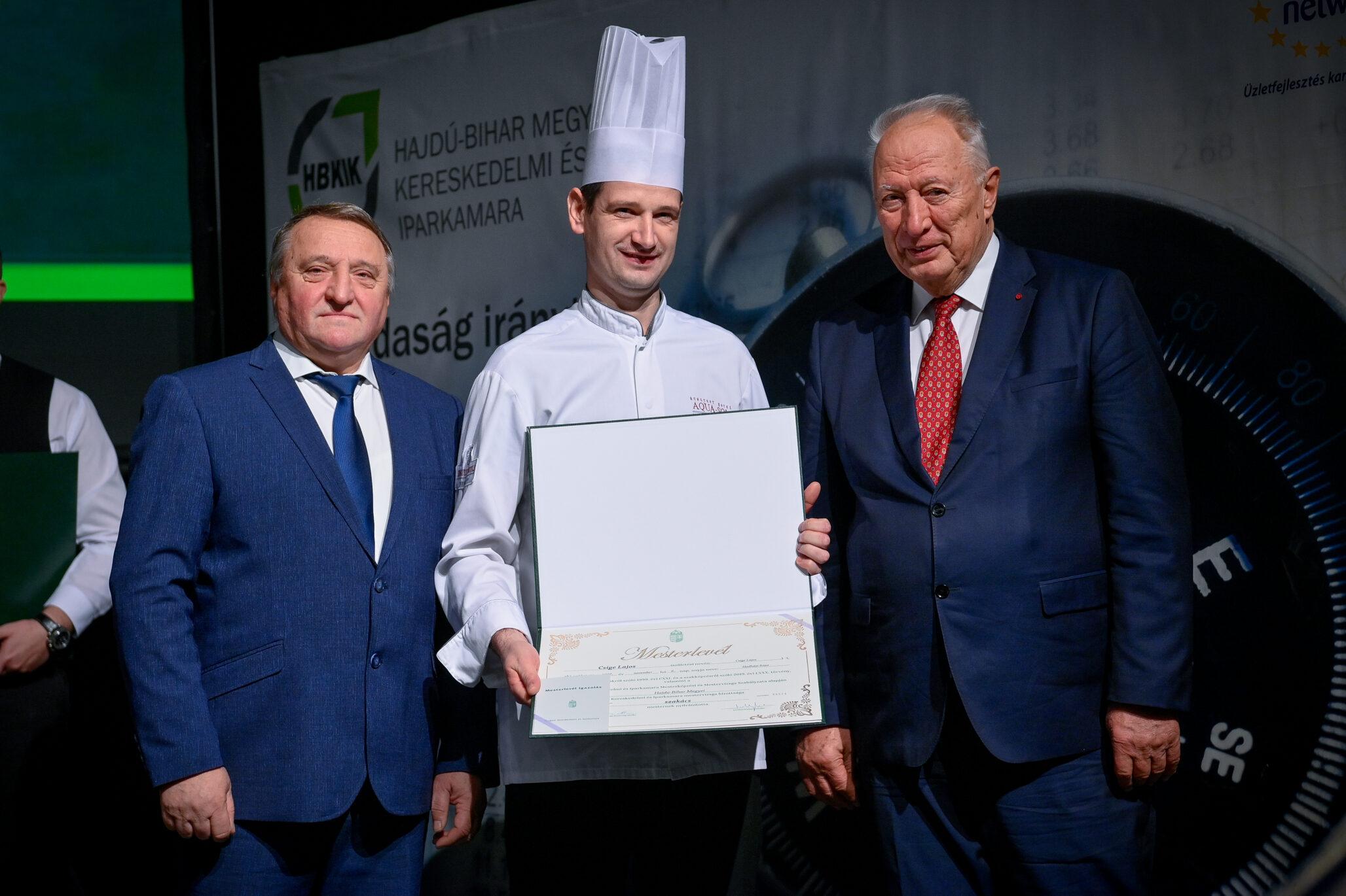 Tasi Sándor, a Hajdú-Bihar Megyei Közgyűlés alelnöke partnerséget kínált az újdonsült mestereknek. Mint fogalmazott, a megye nem csupán a befektetők ide csalogatásában érdekelt, hanem az itteni képzett szakemberek megtartásában is. Márpedig a szakmájuk mesterei kétségkívül ilyenek. Az eseményen aranykoszorús mesterlevelet vehetett át Mile József mesterszakács, világbajnok szakácsmester, az Aquaticum Termál Wellness Hotel executive chefje.