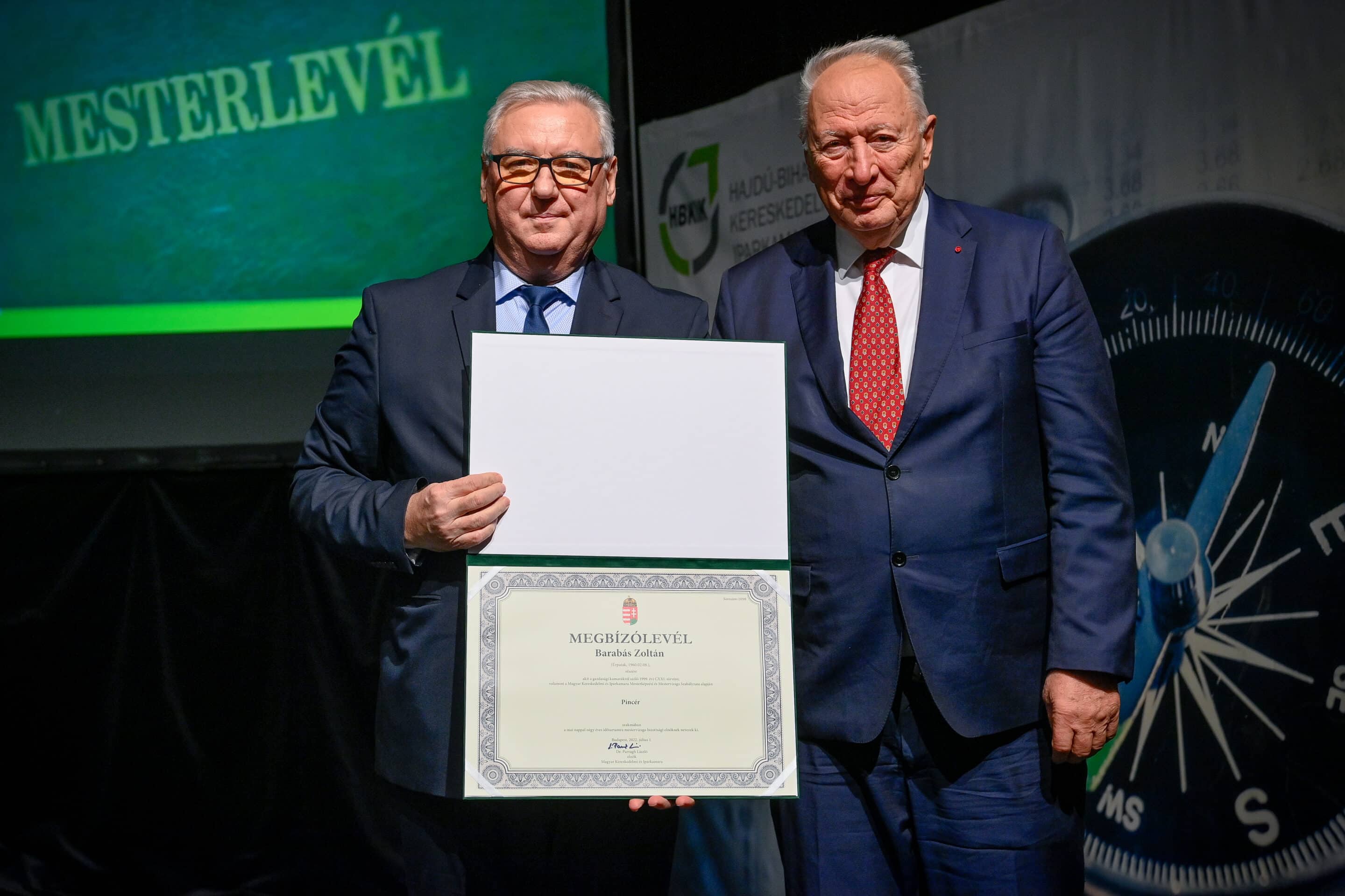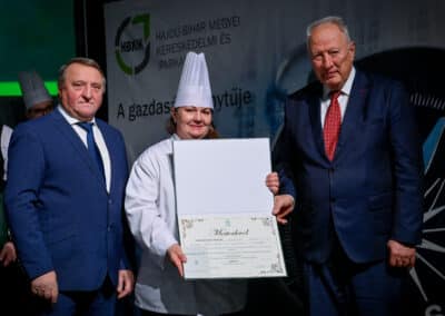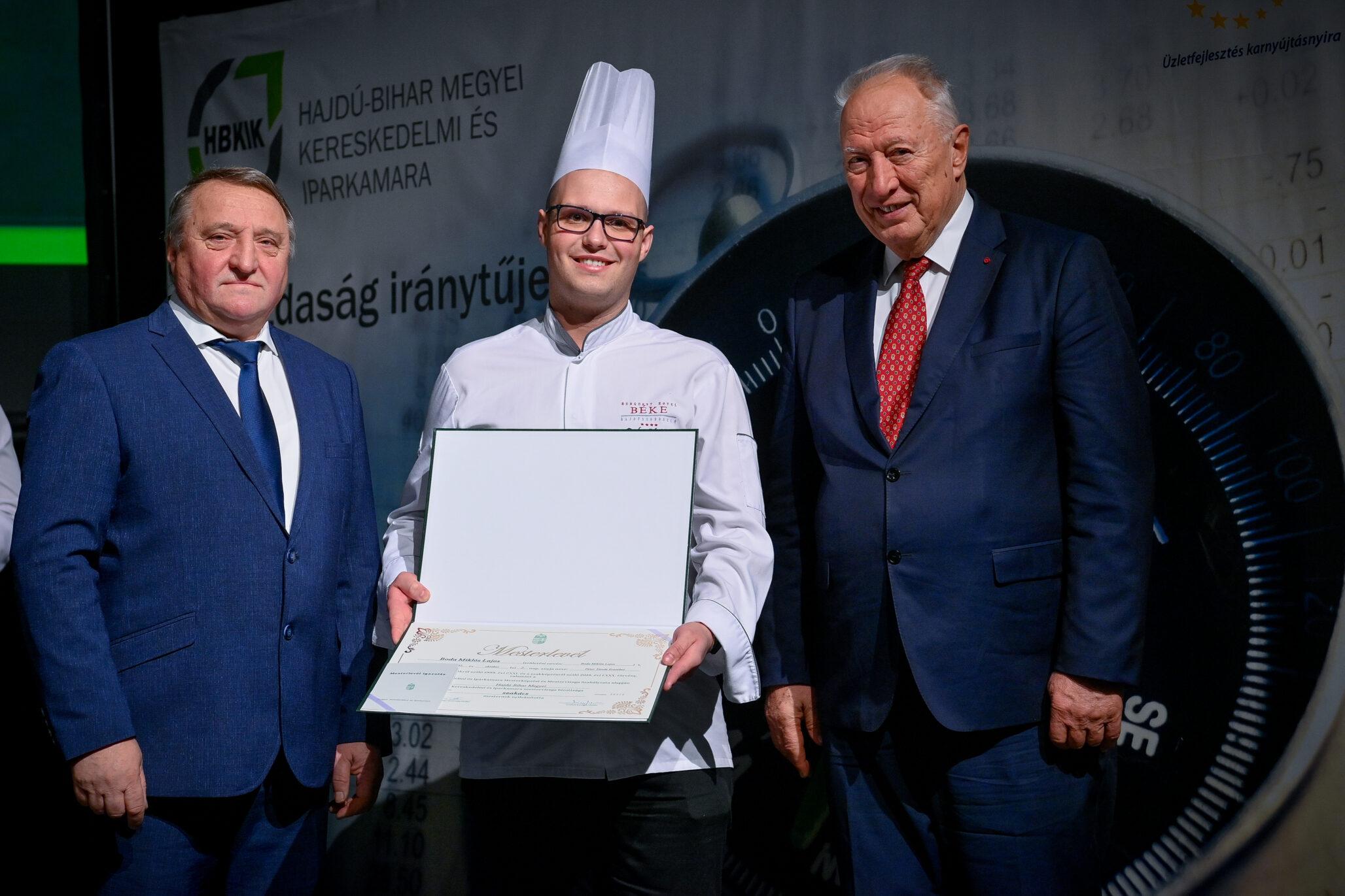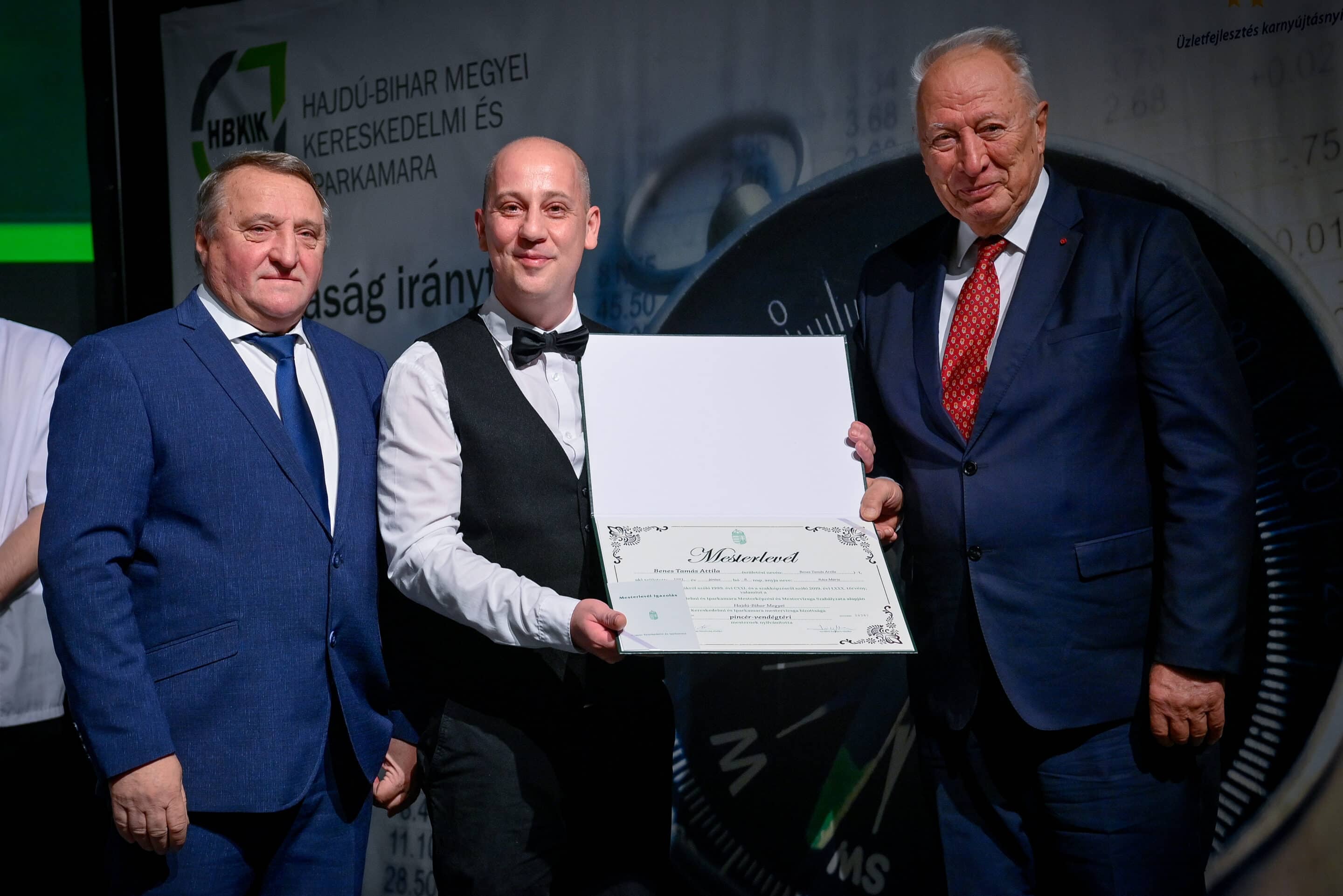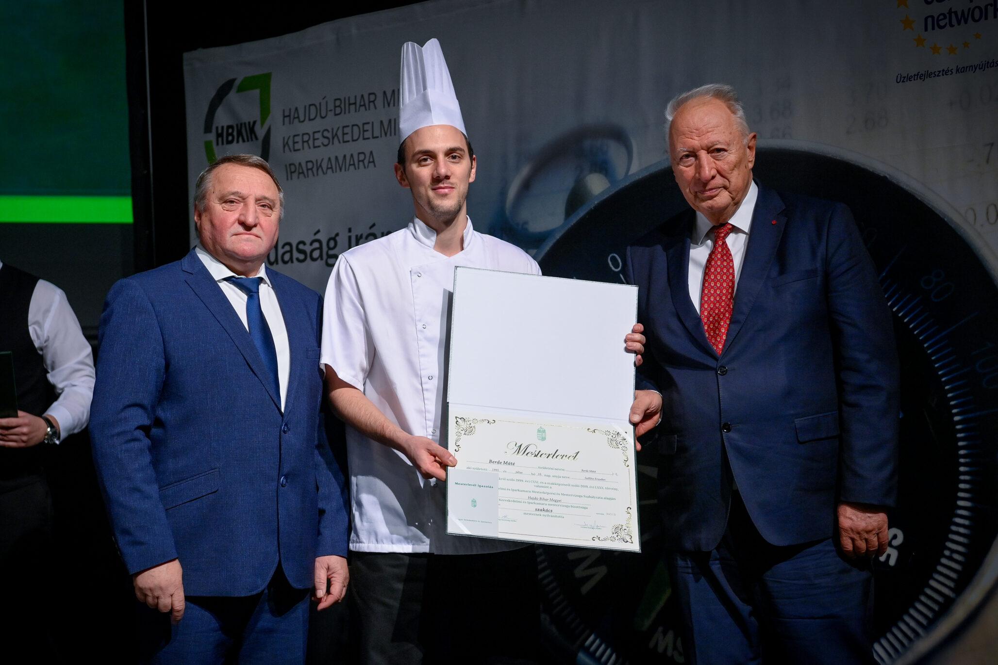 Tasi Sándor, a Hajdú-Bihar Megyei Közgyűlés alelnöke partnerséget kínált az újdonsült mestereknek. Mint fogalmazott, a megye nem csupán a befektetők ide csalogatásában érdekelt, hanem az itteni képzett szakemberek megtartásában is. Márpedig a szakmájuk mesterei kétségkívül ilyenek. Az eseményen aranykoszorús mesterlevelet vehetett át Mile József mesterszakács, világbajnok szakácsmester, az Aquaticum Termál Wellness Hotel executive chefje.