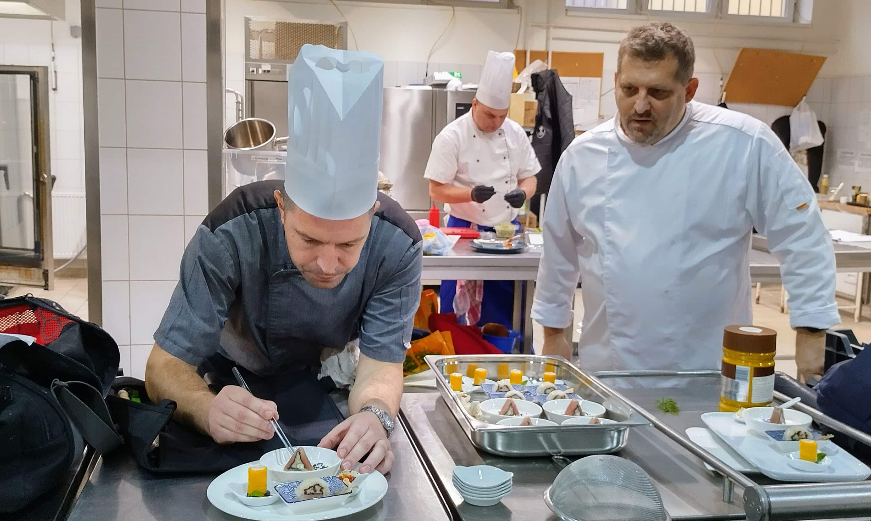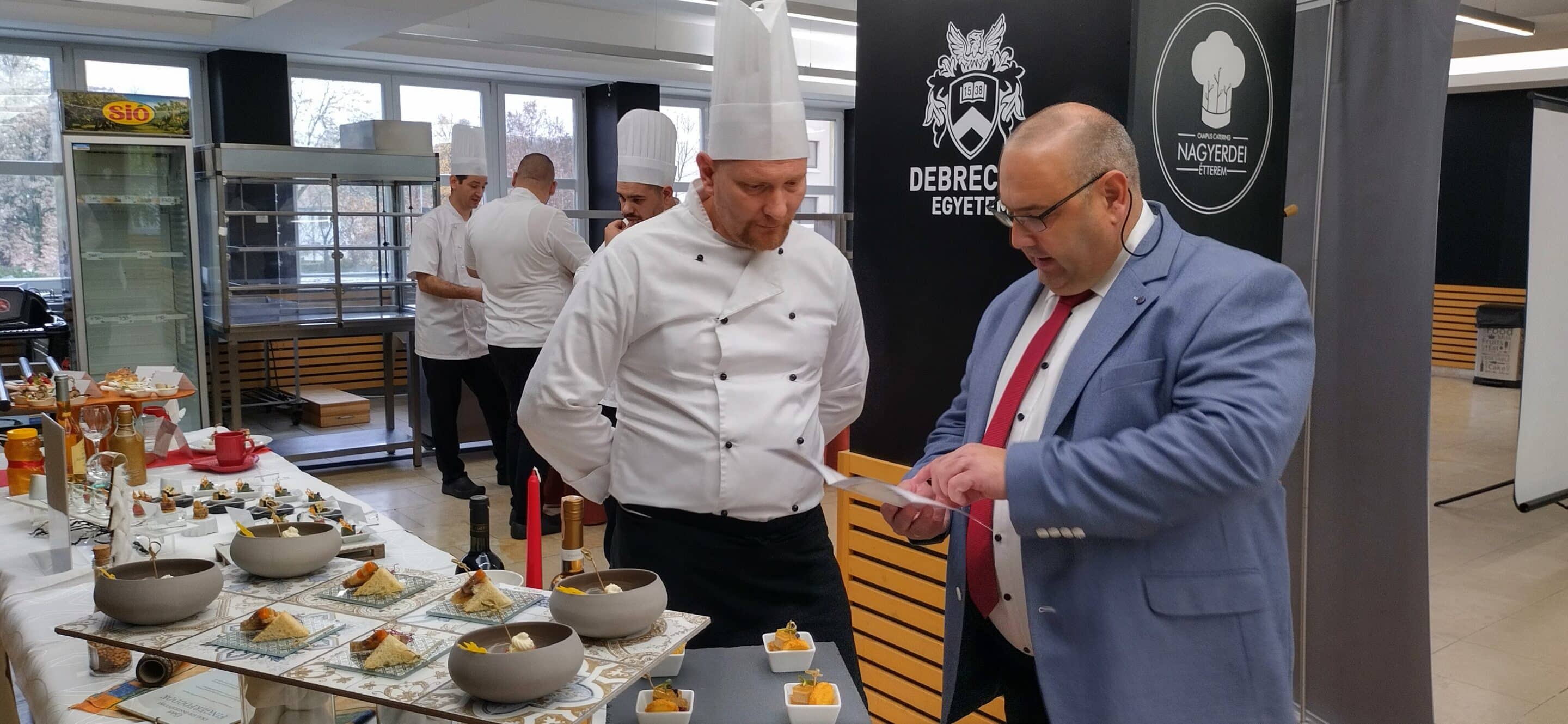 Hajdú-Biharban 11 szakács és 6 pincér mérette meg tudását ezen a hétvégén. Valamennyien a szakmájuk elhivatott gyakorlói, minimum öt év szakmai gyakorlattal és kellő ambícióval. A vizsga több lépcsőből állt: egyrészt online elméleti vizsgát tettek – szakmai, pedagógiai és vállalkozásvezetési ismeretekről is számot adva –, másrészt több napos gyakorlati projektfeladat várt rájuk. Az első napon 4 fogásos finger food menüt mutattak be a rangos mestervizsga-bizottság előtt. A második napon a pincérek díszterítéseinek kiállítása következett, majd egy ötfogásos degusztációs menü várta a meghívott vendégeket. Mind az elkészült ételek, mind a felszolgálás a vizsga részét képezték.