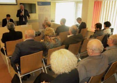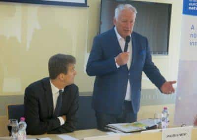 Miklóssy Ferenc, a HBKIK elnöke köszöntőjében hangsúlyozta: a cél az, hogy minél több hazai kis- és középvállalkozásból minél rövidebb idő alatt innovatív, a nemzetközi piacokon is versenyképes vállalkozás jöjjön létre. „A kormány ehhez kíván hozzájárulni a fejlesztési stratégia kidolgozásával, ennek a munkának azonban a piaci szereplők valós igényein kell alapulnia, hiszen csak így van értelme. A Kamara is régóta szorgalmazza már a kkv-szektor még komplexebb és intenzívebb segítését, hiszen a jövőnk záloga az elkötelezett, modern tudással felvértezett és nemzeti tulajdonban lévő vállalkozásokban rejlik. Az exportjuk révén nekik kell megtermelni azt a hatalmas pénztömeget, amit a multik eredmény-ágon évről-évre kivisznek Magyarországról. A négy visegrádi ország tekintetében ez évi 50 milliárd euróra rúg” – emlékeztetett a kamarai vezető.
