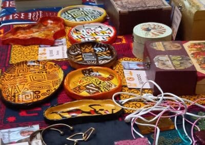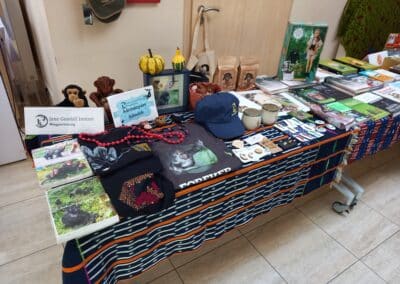 Rendezvényünk szünetében az inspiráló előadások mellett a résztvevők megcsodálhatták a Jane Goodall Intézet, a Közel Afrikához Alapítvány és AfriKata standjain felsorakoztatott különleges, színpompás afrikai ajándéktárgyakat, tematikus, „zöld” kiadványokat, Jane Goodall dedikált könyveit és a róla készült vászonképeket is. A kiállítási standoknál az érdeklődők további érdekességeket tudhattak meg a szervezetek által képviselt jó ügyekről, valamint az ajándéktárgyak eredetéről, funkciójáról, történetéről. Azok a résztvevők, aki az élményen túl egy ajándéktárgyat is haza szerettek volna vinni emlékbe, adományok felajánlásával járulhattak hozzá a szervezet munkájához.