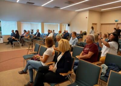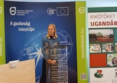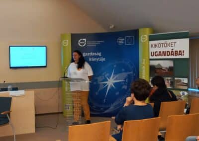 Virág Gréta, a Közel Afrikához Alapítvány önkéntese a Maliban és Ruandában szerzett élményeit osztotta meg a jelenlévőkkel. – A Connection Tour (Kapcsolódási Túrák) nevű programunk keretében jutottunk el Maliba, ahol az állami oktatás viszonyaira az a jellemző, hogy 150-200 gyereket összeterelnek egy terembe, ahol se pad, se szék, se asztal. Mostanra eljutottunk oda, hogy havi 5 ezer forintnak megfelelő ösztöndíjjal gyerekeink magániskolában tanulhatnak, sőt, magánegyetemen, jelentősen javítva ezáltal a munkaerőpiaci pozícióikat. Mindezt egy olyan városrészben értük el, amit egyik oldalról szeméttelep, a másik oldalról pedig egy mocsár határol – mondta el Gréta. A fiatal lány Ruanda kapcsán arról beszélt, hogy bár Malinál relatíve gazdagabb országról van szó, azonban az oktatásügy náluk is komoly kihívásokkal küzd. – Ide is kiterjesztettük gyermektámogatási projektünket, amely egyelőre 3 ruandai iskolában működik. Míg a fővárosuk, Kigali egy ultramodern metropolisz, vidéken sok helyen máig a nyomor az úr. Feladat tehát van bőven, ezért folyamatosan önkéntesek jelentkezését várjuk a Connection Tour keretében– mondta.