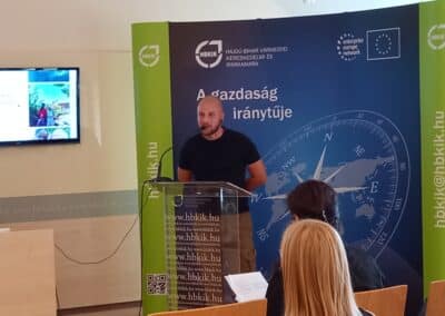 Hegedűs Dávid, a College for International Co-operation and Development képviseletében „Tanulj meg Utazni – Utazz, hogy tanulj!” című előadásában hangsúlyozta, hogy Ő az elmúlt három évben önkéntesként járta a világot, és közben gyökeresen átalakult a véleménye a „hasznos utazásról”. – Hiszem, hogy az ember úgy fejlődik, ha utazik, és visz valamit a világba; tehát nemcsak kivesz belőle, hanem hozzá is tesz. Tegyük fel magunknak a kérdést: miért utazunk? Kikapcsolunk, kalandozunk, és így tovább, én azonban ennél többet próbáltam kihozni az utazásaimból. Fontos, hogy átlépjük a komfortzónánkat, hogy tanuljunk és fejlődjünk az utazásaink során. Számomra az utazás és a turizmus nem ugyanaz, hiszen például egy hátizsákos túra számtalan olyan meglepetést, élményt és kalandot tartogat az utazó számára, amit egy luxusszálloda „aranykalitkája” sohasem. Utazásaink során érdemes minél inkább megismerni a helyi embereket és szokásokat, ez segíthet hozzá a valóság, azon keresztül pedig saját magunk jobb megismeréséhez – mondta Dávid.