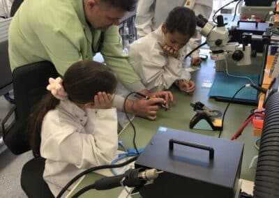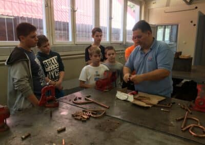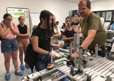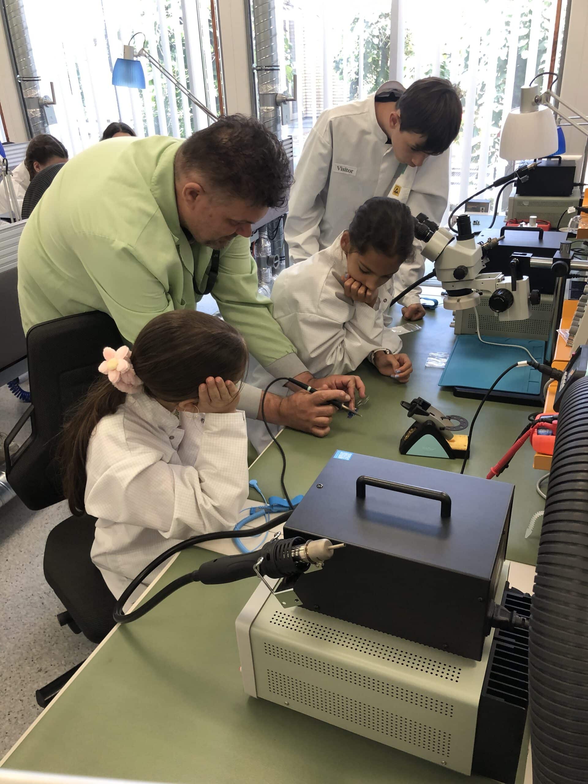 A Schaeffler Debrecennél a gyárbejárást számos izgalmas játék követte, és a megmunkálógépeket is kipróbálhatták az ügyes kezű ifjú tanoncok. A Vitesco Technologies Hungary Kft.-nél a duális képzésben résztvevő tanulóival együtt kerekasztalbeszélgetéssel fogadta csoportunkat, majd a kíváncsi jelentkezők a robotok irányításával ismerkedhettek. A robotika rejtelmeiben az Agóra Tudományos Élményközpontban is elmélyülhettek, de a más tudományos kísérletekben is részt vehettek a fiatalok.