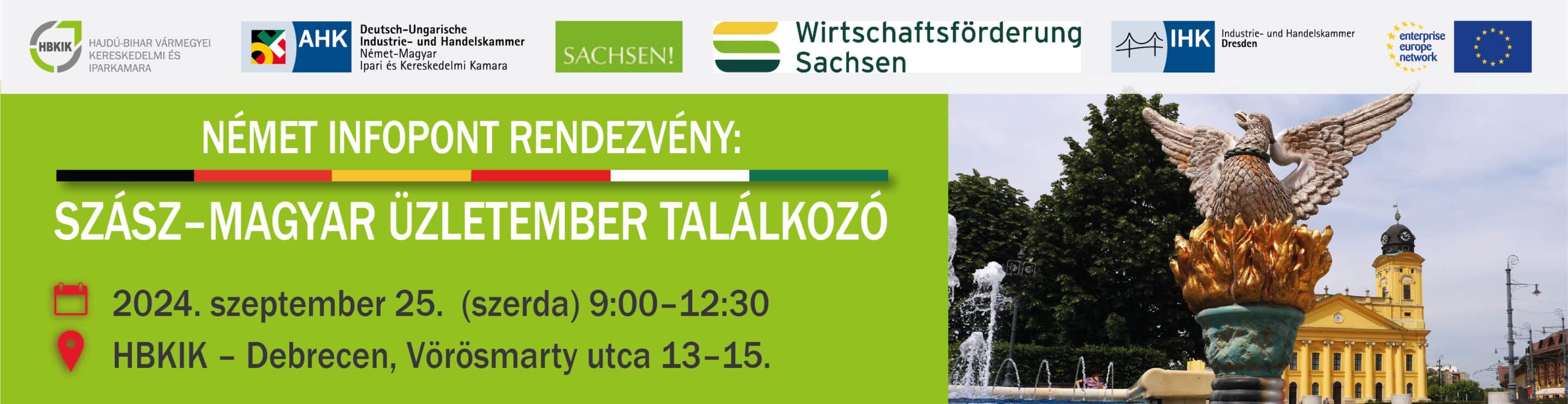 A Hajdú-Bihar Vármegyei Kereskedelmi és Iparkamara, a Német-Magyar Ipari és Kereskedelmi Kamara, valamint a Wirtschaftsförderung Sachsen szervezésében egy Szász delegáció érkezik kamaránkba 2024. szeptember 25-én.