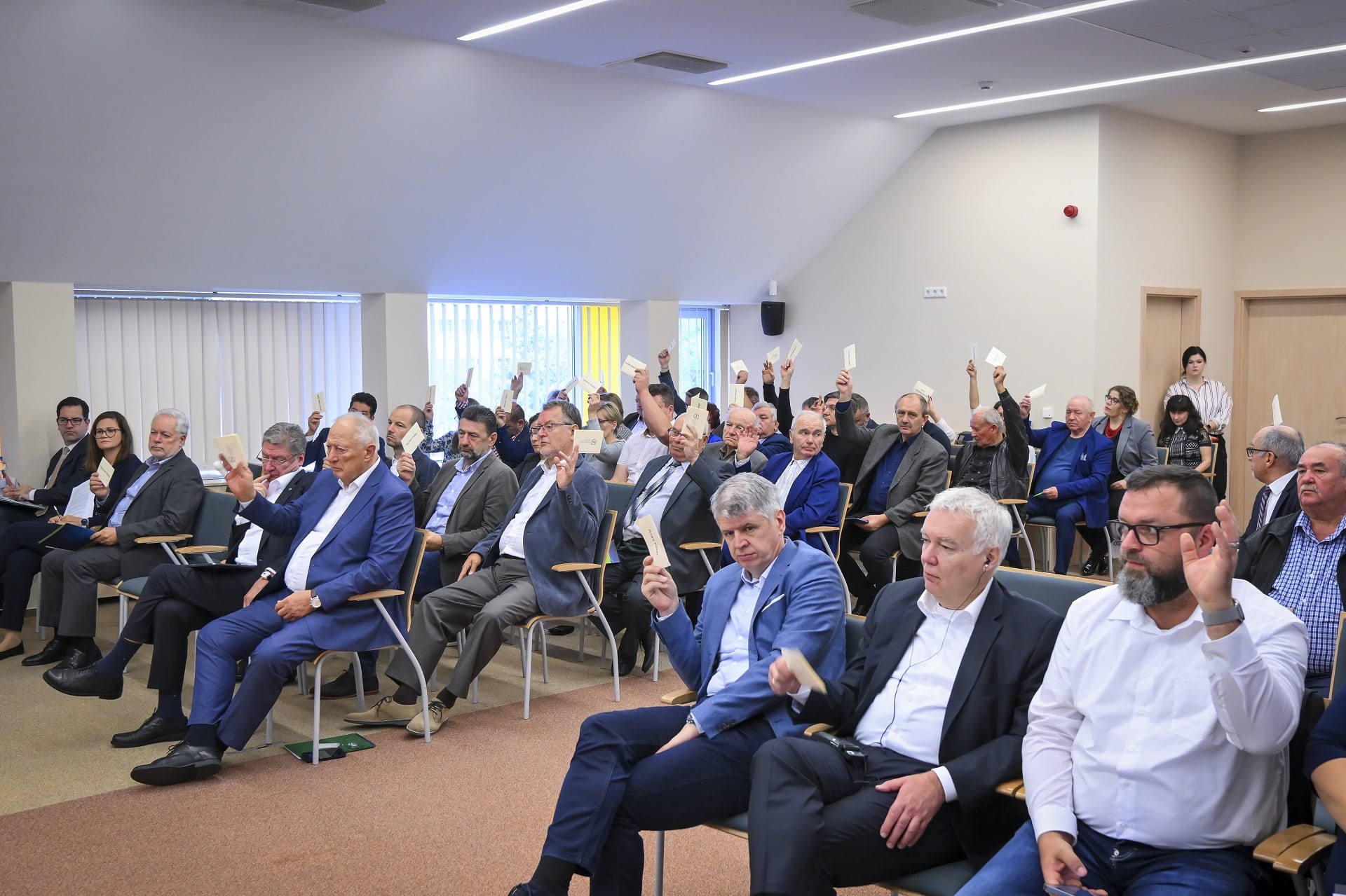 A küldöttek nyílt szavazással, egyhangú döntéssel: