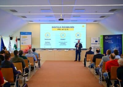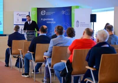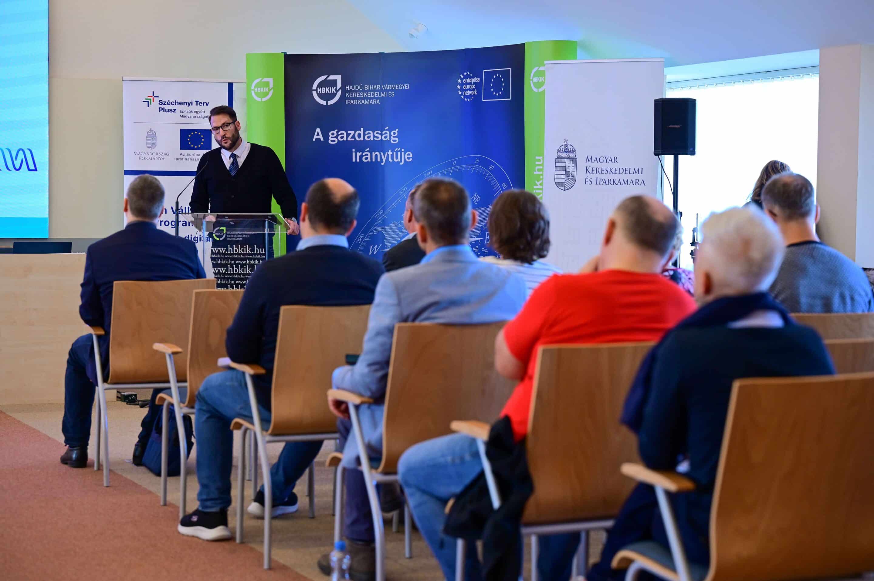 A Hajdú-Bihar Vármegyei Kereskedelmi és Iparkamara (HBKIK) székházában december 3-án lebonyolított rendezvényen a következő témák kerültek terítékre: kamarai támogatás a vállalkozások digitalizációs felzárkózásához, kkv-k online fejlődésének lehetőségei, jó gyakorlatok bemutatása, elérhető finanszírozási formák és digitális eszközök, az MI gyakorlati használata.