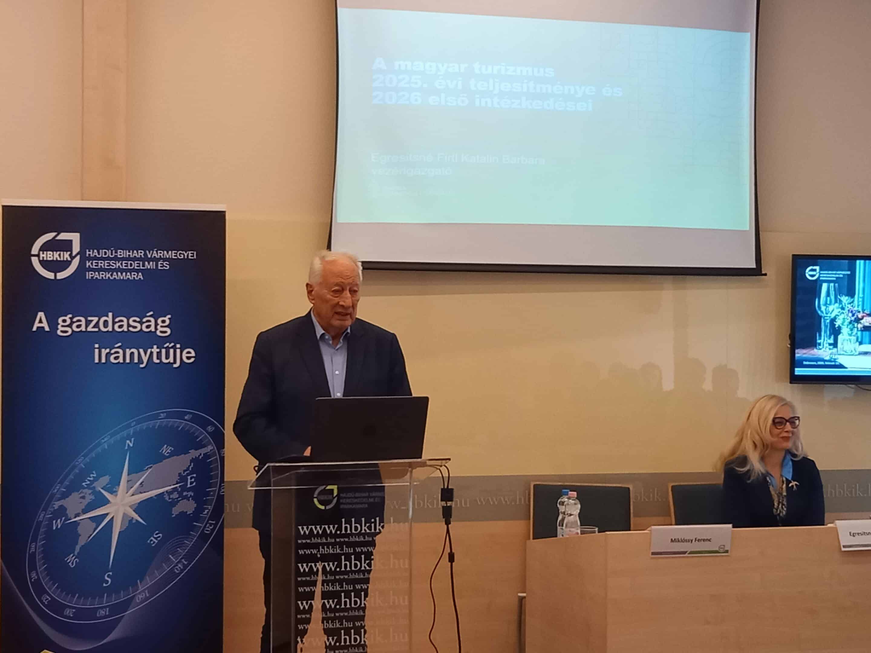 Egresitsné Firtl Katalin, a Magyar Turisztikai Ügynökség vezérigazgatója a magyar turizmus 2025. évi teljesítménye kapcsán hangsúlyozta, hogy tavaly rekordévet zárt a magyar turizmus. – Magyarország ma egy biztonságos ország és ez a turizmus számain is megmutatkozik. 2030 helyett már 2025-ben elértük a 20 milliós vendégszámot. Ők közel 50 millió vendégéjszakát töltöttek el nálunk. A belföldi és a külföldi vendégek aránya nagyjából fele-fele volt. Az egyes turisztikai desztinációkat tekintve azt lehet mondani, hogy Budapest és a Balaton után Debrecen is szép vendégforgalmat produkált. 247 ezer vendég összesen 232 ezer vendégéjszakát töltött a cívisvárosban. Tavaly a szálláshelyi bevételek is rekordokat döntöttek – hangzott el.